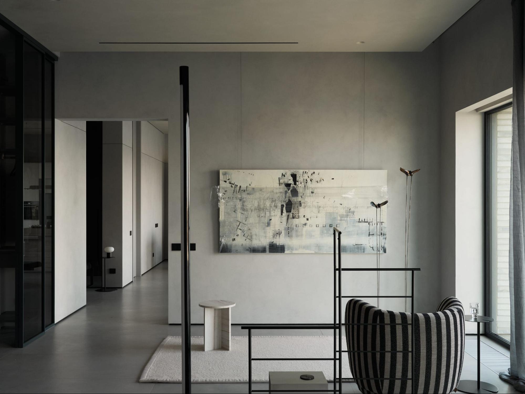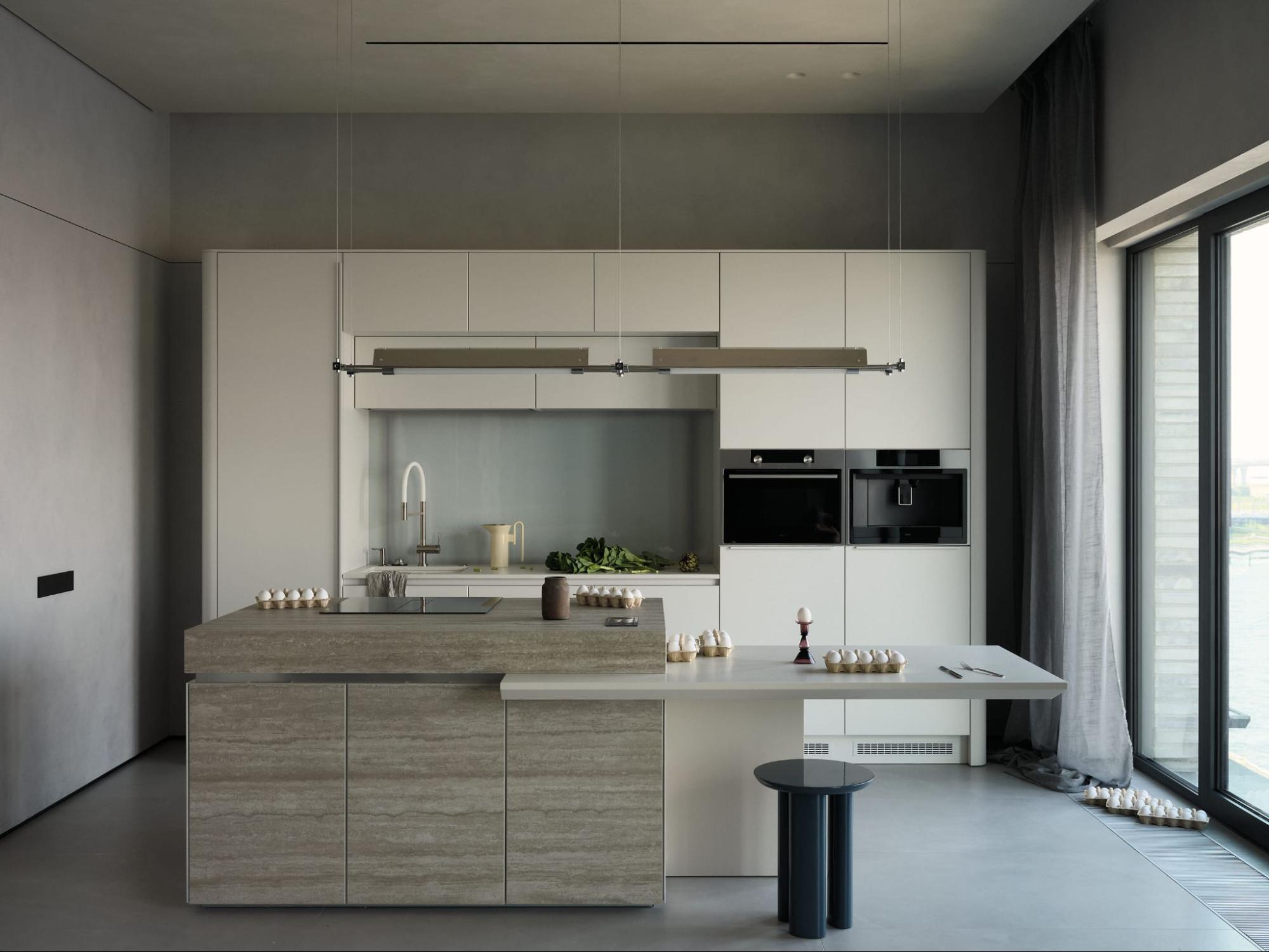 Здесь нет визуального шума, только спокойствие. Воздух и свет свободно циркулируют, замедляют ритм жизни и помогают отвлечься от суеты. Квартира как будто погружена в лёгкую дымку, приглашает отключиться от внешнего мира и побыть в моменте.