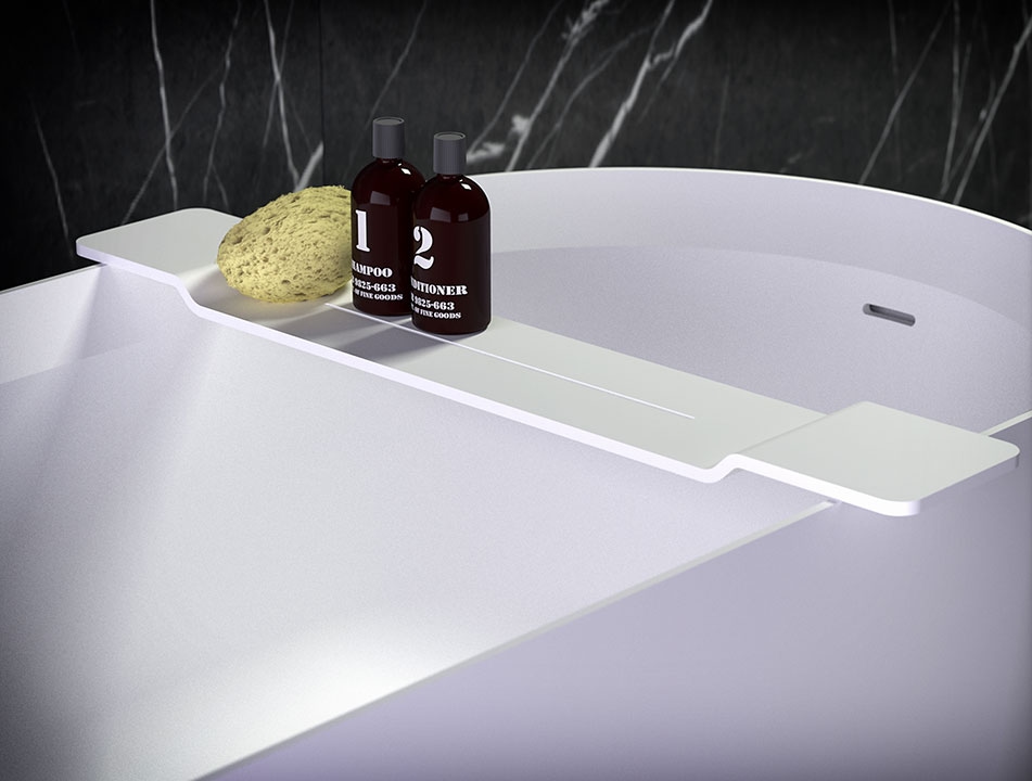 Используйте полочку на ванну Knief K.Stone с лаконичным дизайном для большего комфорта. Доступна в белом и чёрном цветовых вариантах.