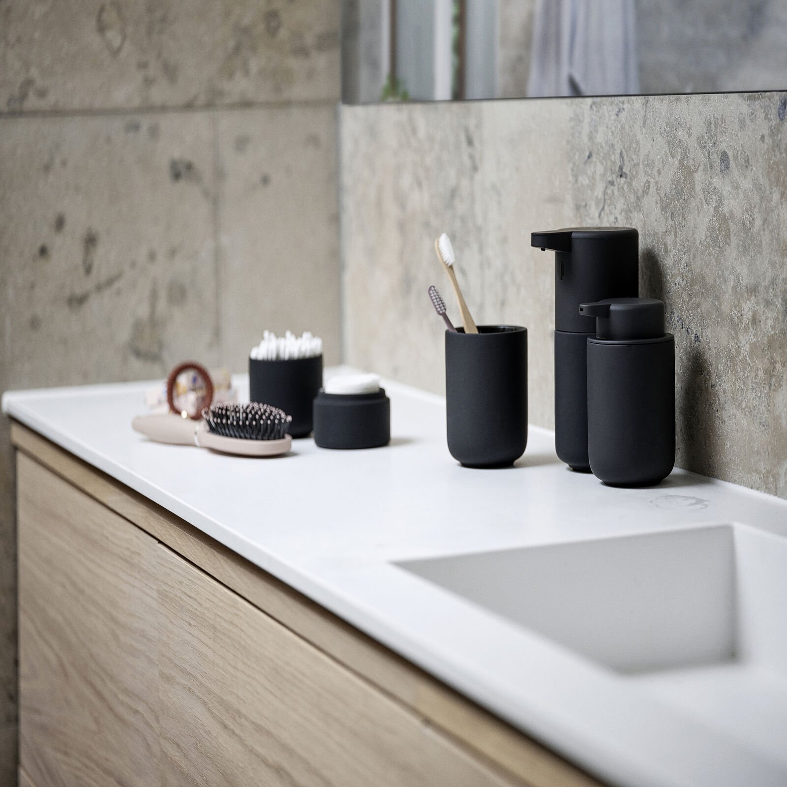Стакан для ванной комнаты Ume Zone Denmark имеет матовое покрытие снаружи и глянцевую внутреннюю отделку из пластика, что делает его удобным в использовании и устойчивым к влаге и загрязнениям. Сдержанный дизайн и фактурность стакана выигрышно смотрятся в любом интерьере, особенно вместе с другими товарами линейки Ume.