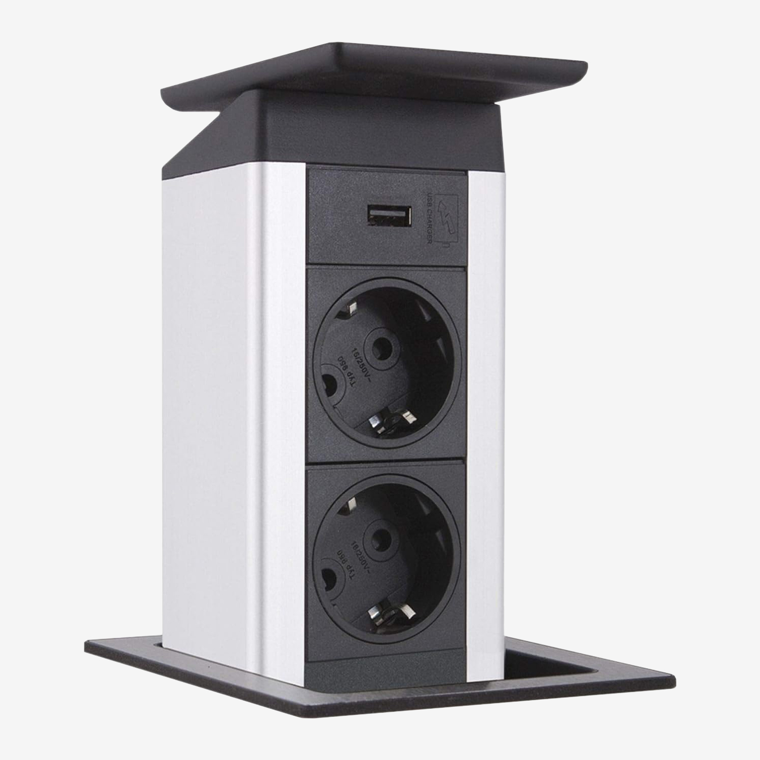 Врезной блок состоит из 2-х розеток VDE 16A и одного USB разъёма.
