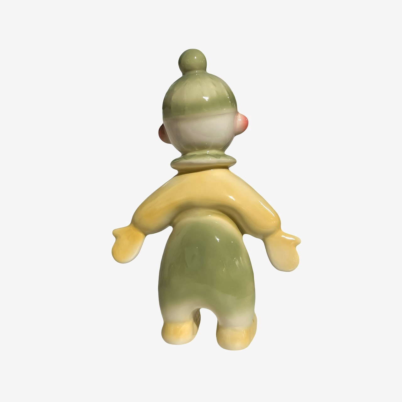 Скульптура Лыжник жёлто-зелёный — переосмысление советских фарфоровых статуэток, выполненное в авторской технике. Изготовленная из полуфарфора и покрытая глазурью модель изображает будто вышедшего из мультика персонажа. Нежные оттенки привносят в дизайн скульптуры жизнерадостность и живость.