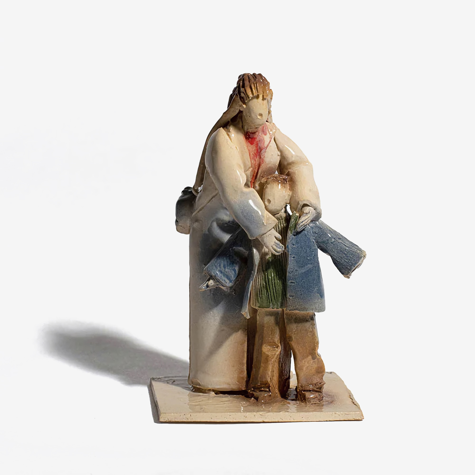 Скульптура Разговоры воплощает безусловную любовь и защиту. Запечатлённый в керамике момент, когда мама обнимает ребёнка, становится тем самым безопасным местом, которое ищет каждый человек. Приглушённые краски композиции создают впечатление воспоминания, выхваченного из потока времени.