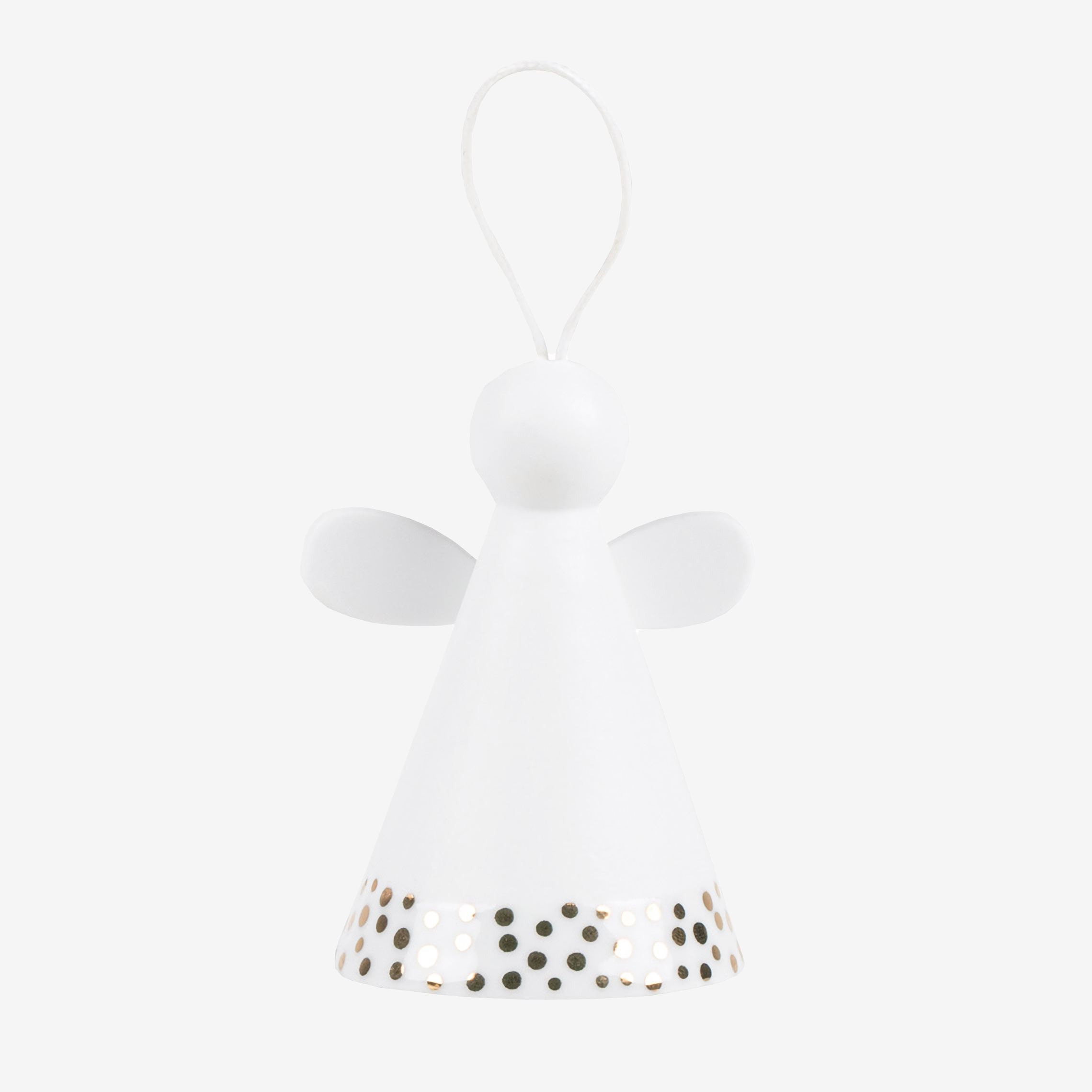 Декоративная подвеска-колокольчик Räder Bell Angel — Golden polka dots, издающая нежный звон, создаст ощущение приближающегося праздника. Белоснежная минималистичная фигурка ангела имеет ненавязчивый цветовой акцент в виде узора из сияющих золотых точек. Основной материал подвески-колокольчика — неглазурованный фарфор с матовой бархатистой поверхностью.