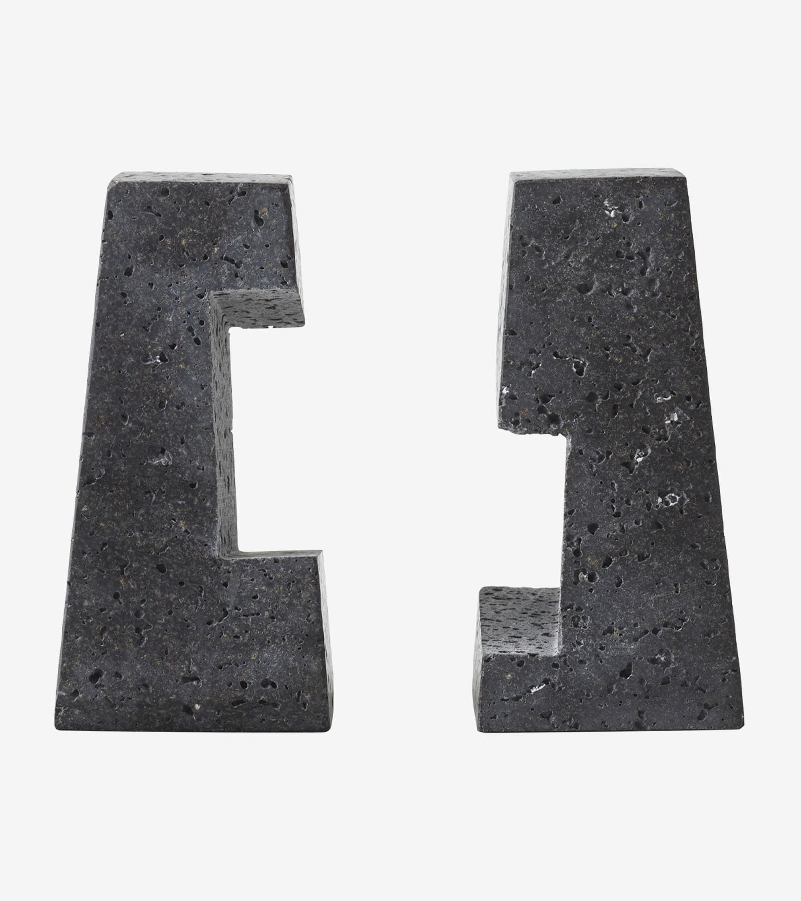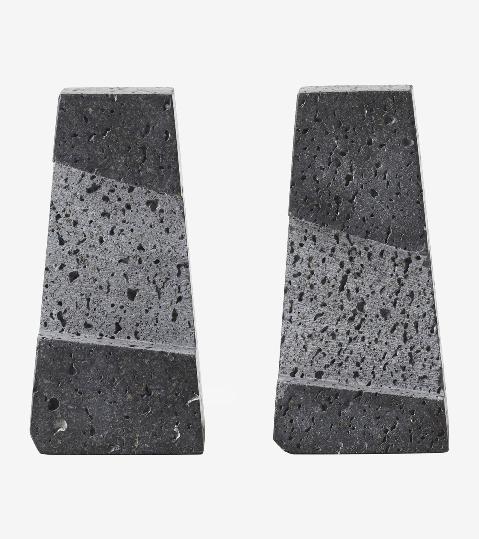 Держатель для книг Menu Converge Bookends изготовлен из лавового камня — тёмного пористого материала с текстурированной поверхностью. Абстрактные формы создают бесконечный простор для экспериментов. Можно использовать каждую деталь по назначению, расположив рядом с книгами, или создать интригующую скульптуру.