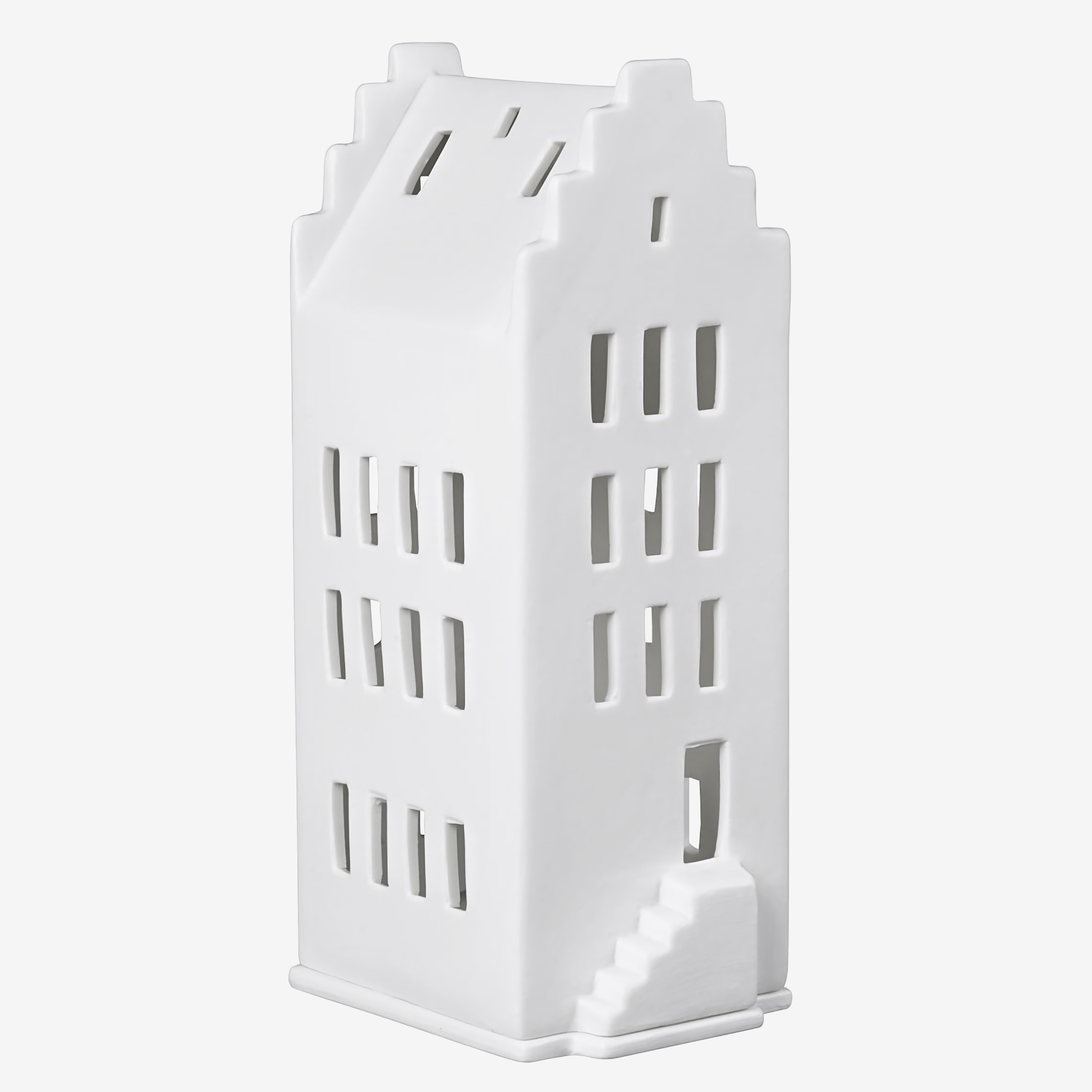 Домик-подсвечник Räder Gable House обладает ярко выраженным фронтоном крыши со строгими геометричными контурами. Вытянутое здание дополнено очаровательной детализированной лесенкой. Домик в белом матовом исполнении может выступать в качестве подсвечника или декоративного арт-объекта.