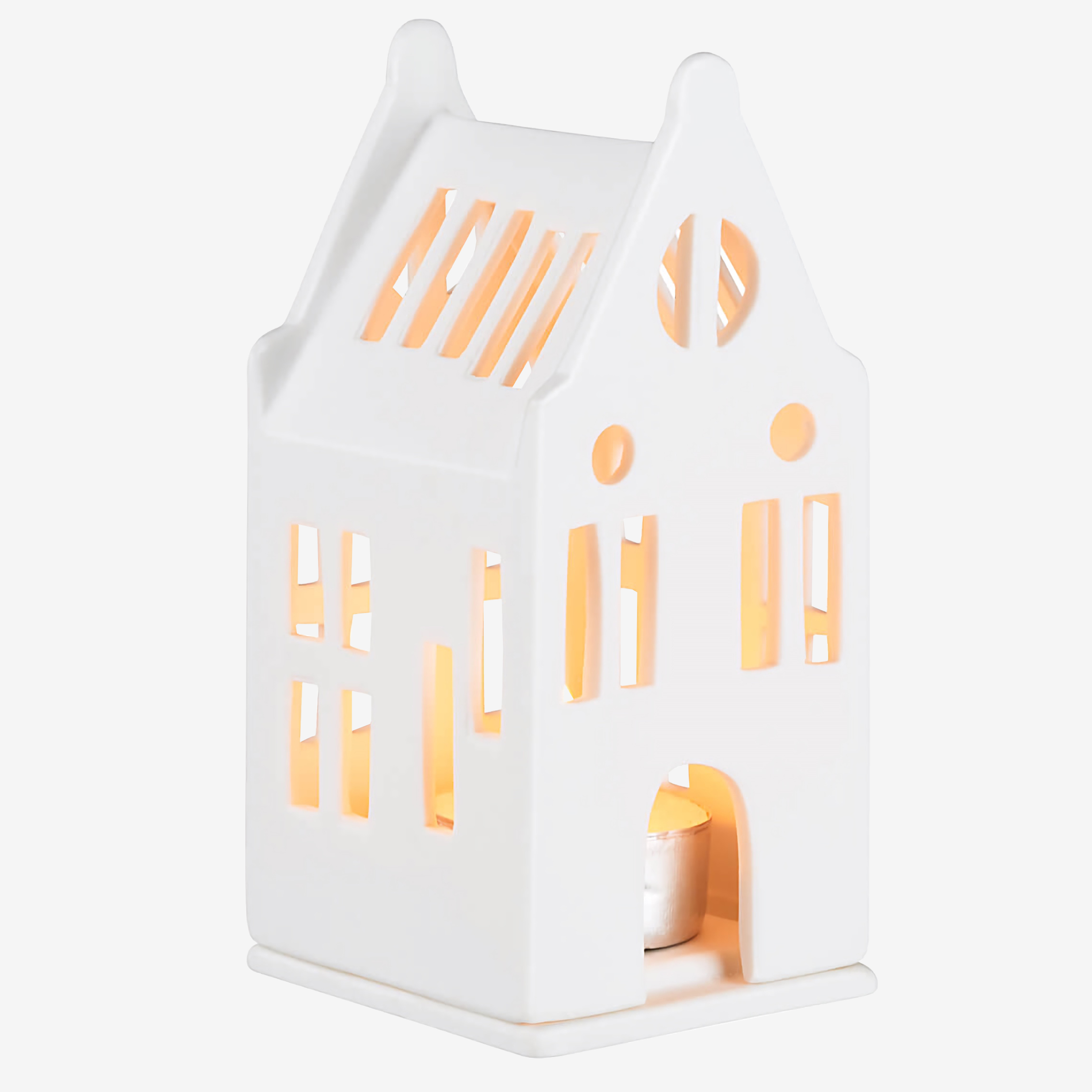 Домик-подсвечник Räder Manor House — миниатюрный особняк с высокой выступающей крышей. Белые фасады подсвечника украшены прямоугольными и круглыми окошками разных размеров. Домик с помещённой внутрь чайной свечой может стать уютным предметом декора или прикроватным ночником.