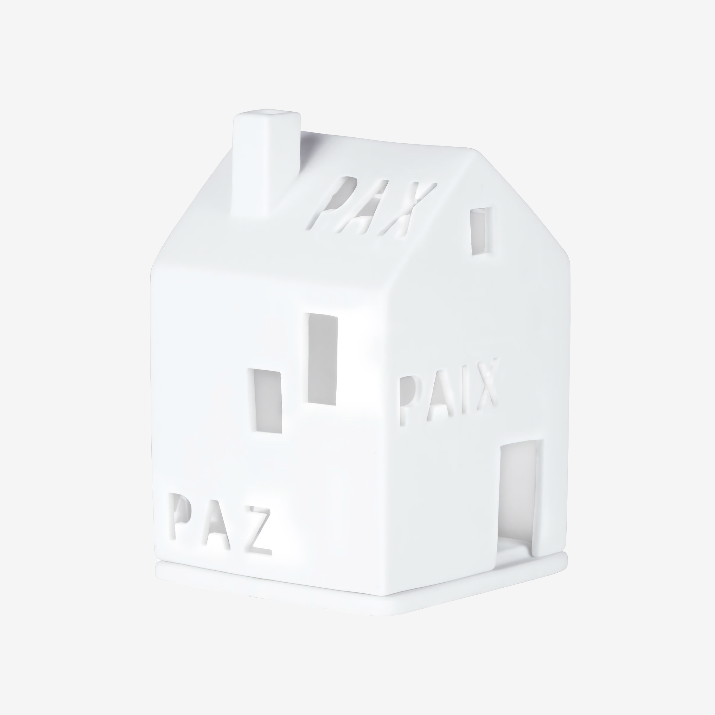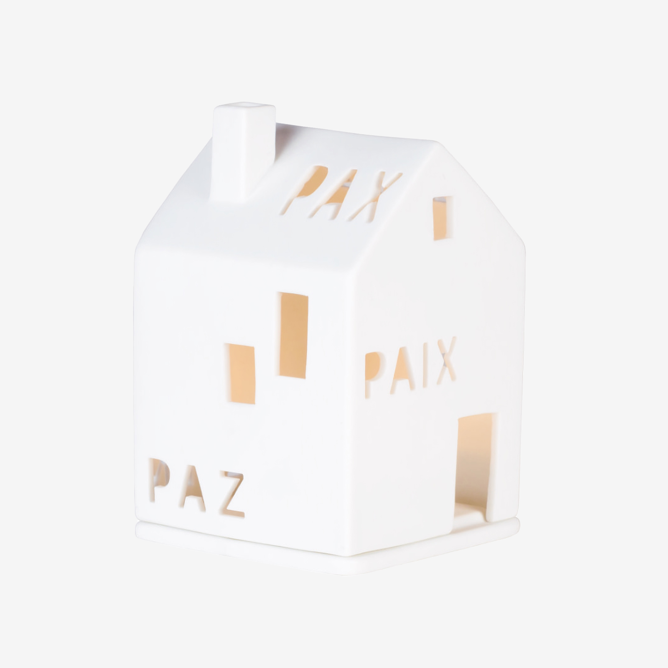 Миниатюрный домик-подсвечник Räder Peace наполнит пространство безмятежностью и спокойствием. На стенах подсвечника выгравировано слово «мир» на разных языках. Окошки и двери домика равномерно пропускают свет свечи, превращая модель Peace в уютный ночник.