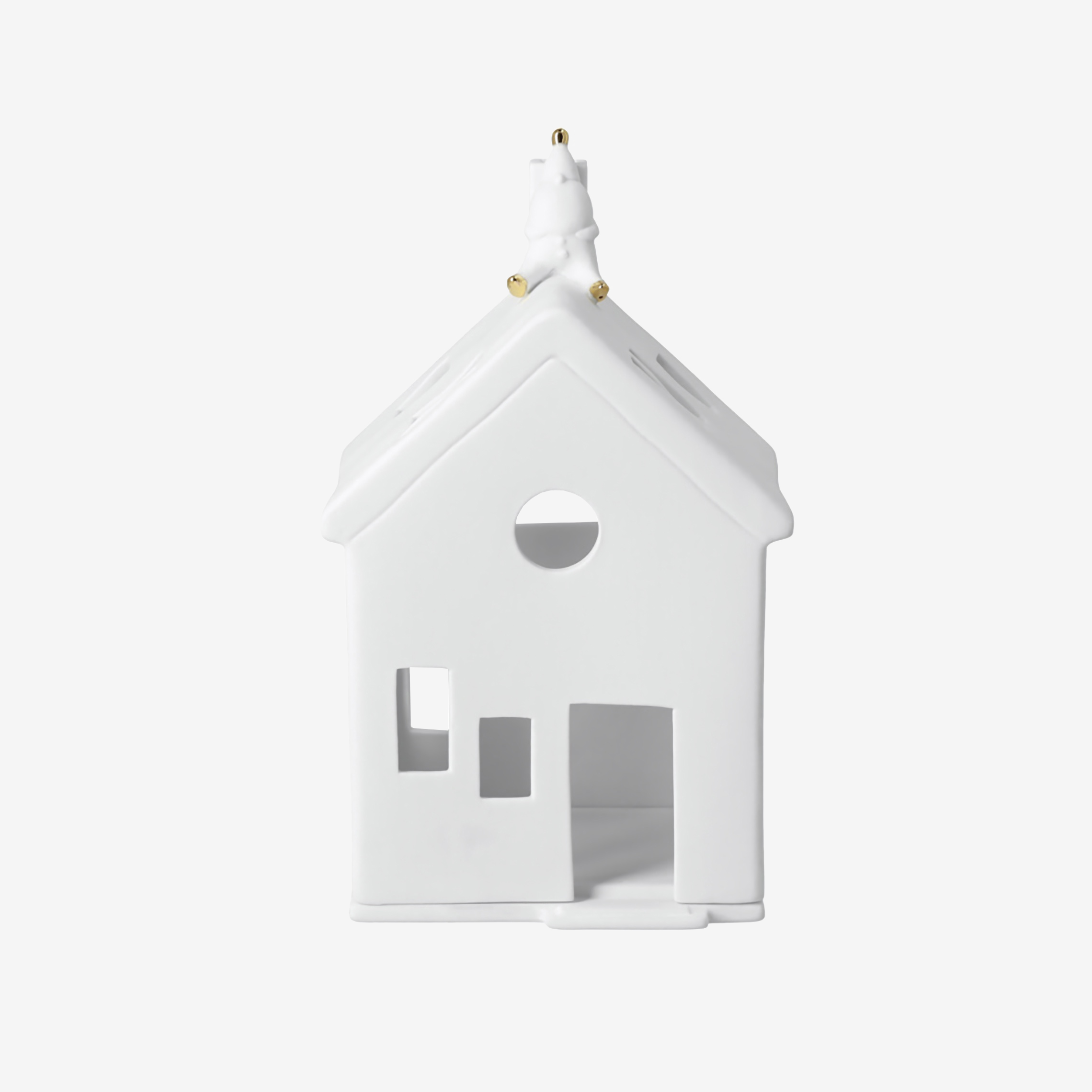 Домик-подсвечник Räder Waiting for Rudolf — забавный декоративный предмет в белоснежном цвете. Сидящий на крыше домика Санта ожидает Рудольфа, готовясь разносить подарки. Праздничный подсвечник Waiting for Rudolf станет одиночным акцентом или частью настоящего фарфорового города из других домиков фабрики.