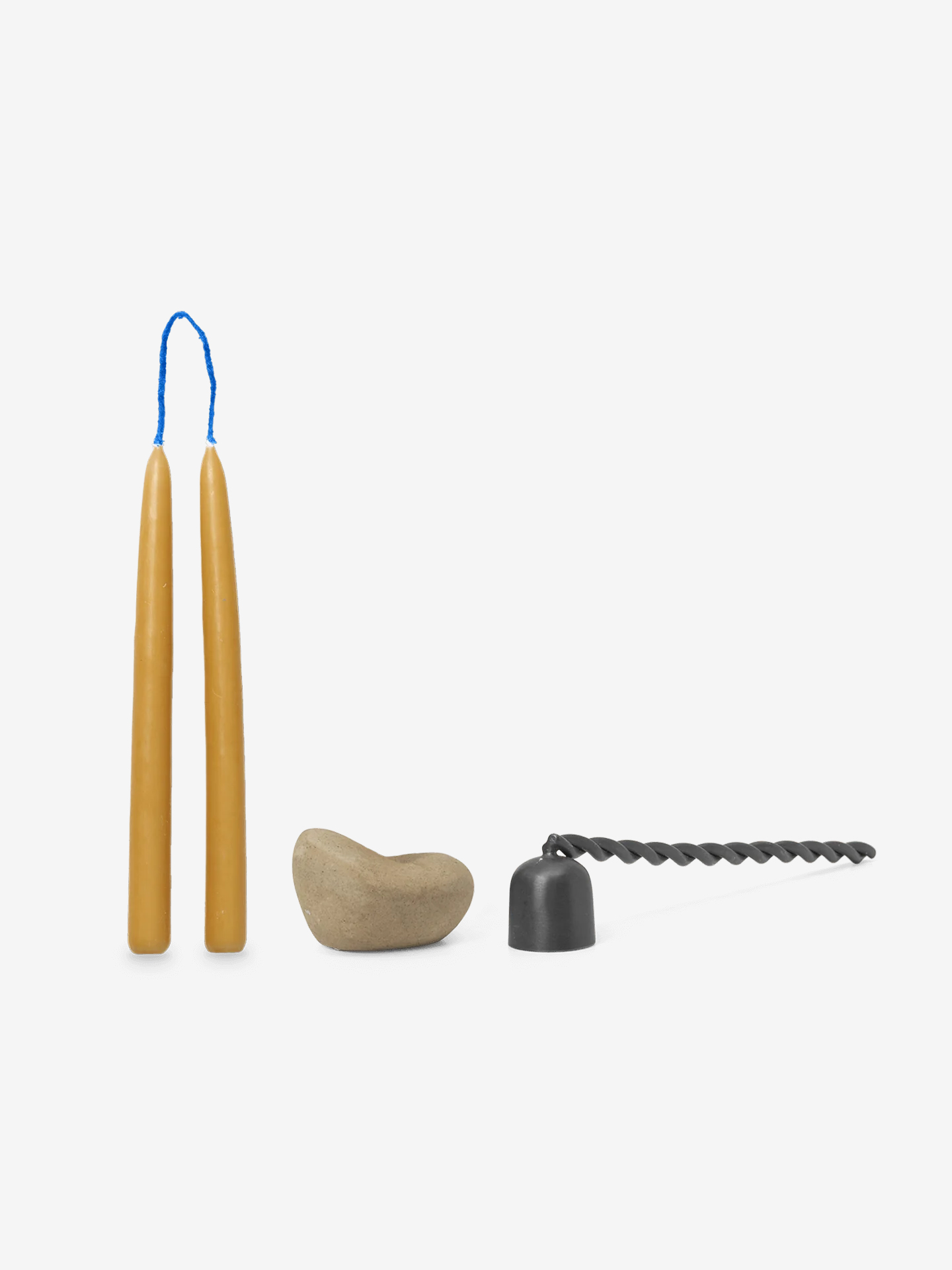 Подарочный набор Ferm Living Libre, вдохновлённый французским выражением «быть свободным», позволит насладиться отдыхом и забыть о суете повседневной жизни. Воспользовавшись предметами из набора, ваш близкий человек сможет восстановить связь с собой и своим окружением. В комплект входят четыре свечи, небольшой керамический подсвечник и гаситель из латуни.