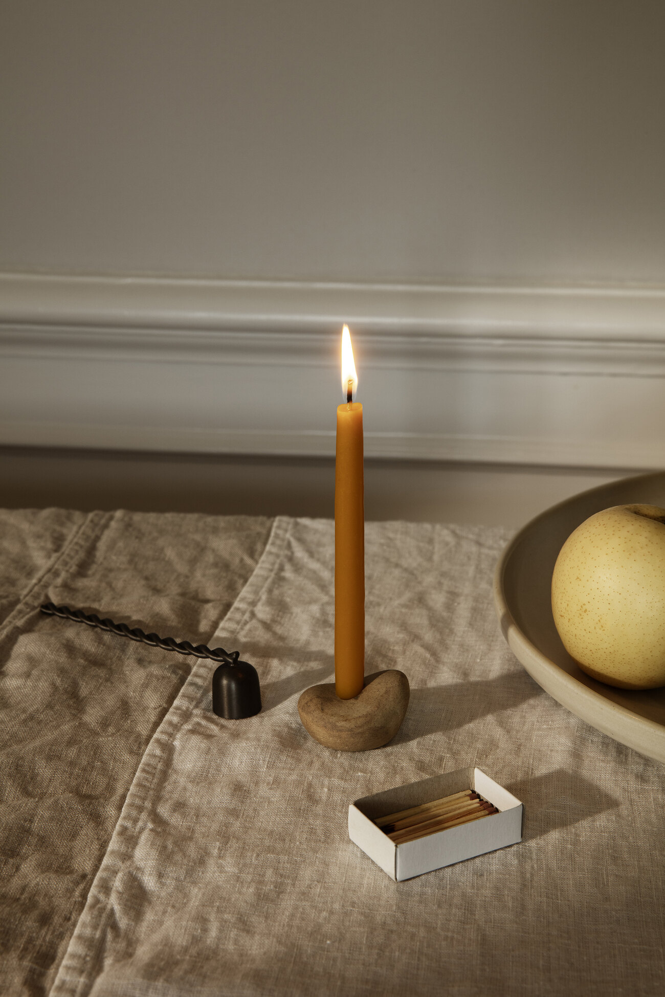 В комплект входят: керамический подсвечник, 4 шт. однотонных парафиновых свечей и гаситель Twist Candle Snuffer в оттенке Black Brass.