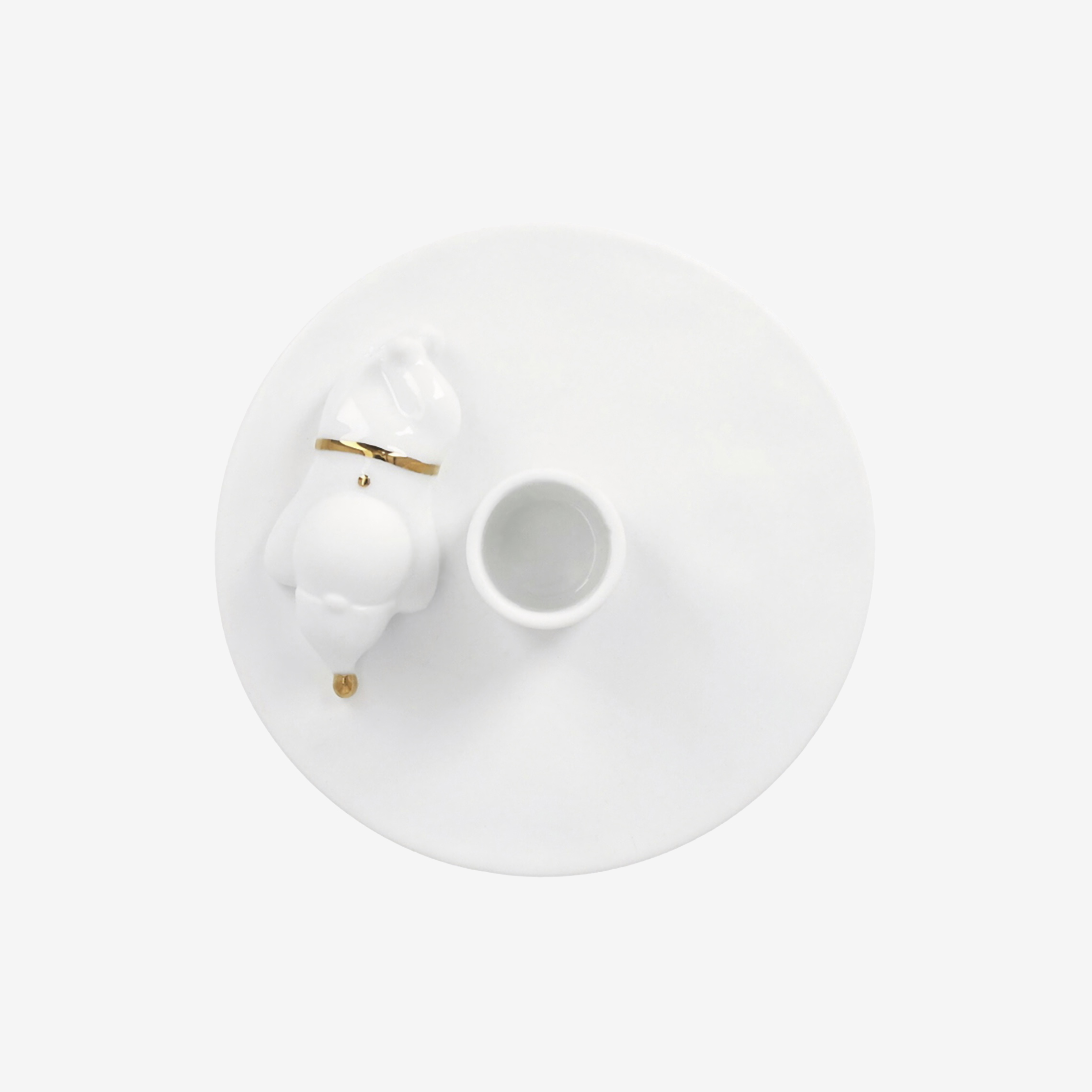 Подсвечник Räder Santa Stargazing — праздничное украшение, выполненное в сдержанной минималистской эстетике. Подсвечник имеет удобную круглую подставку, предотвращающую загрязнение поверхностей воском. В центре миниатюрного предмета декора находится забавная фигурка Санты, украшенная золотой деколью.