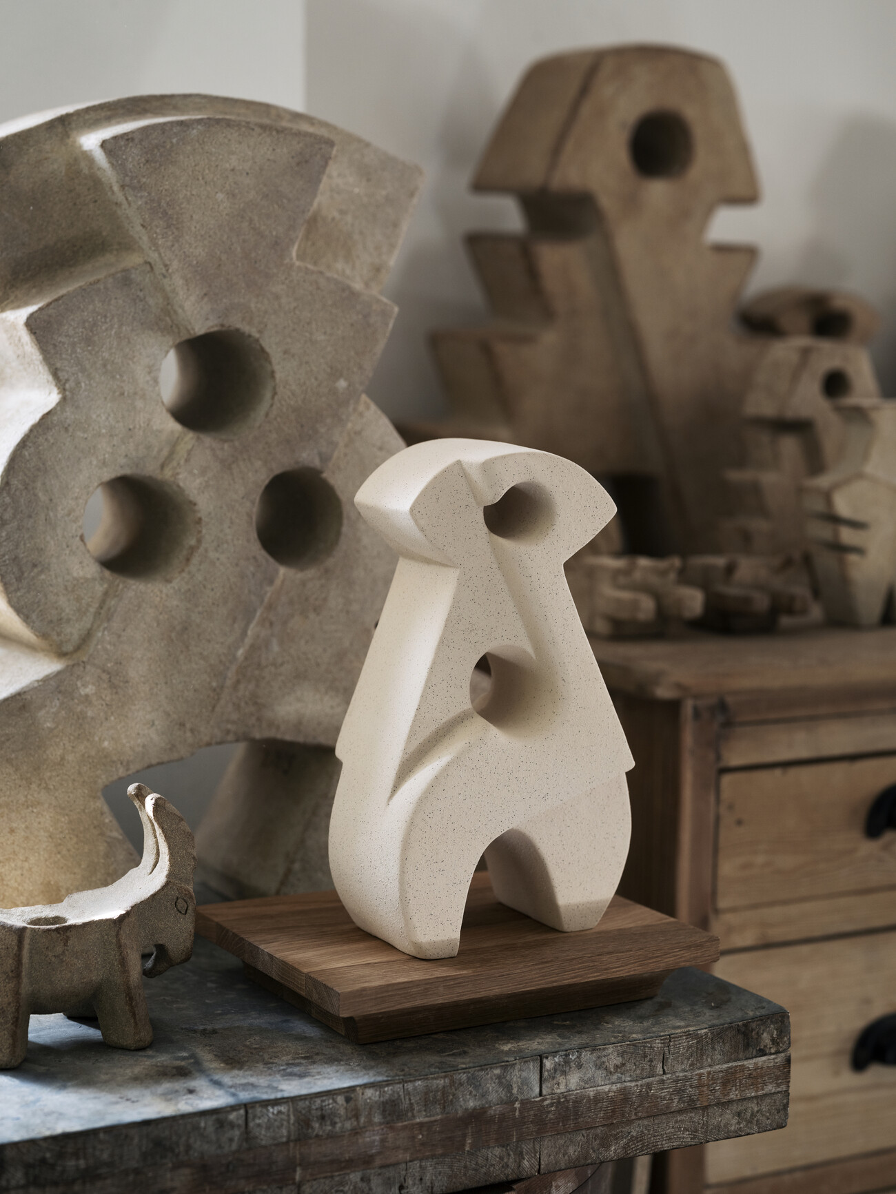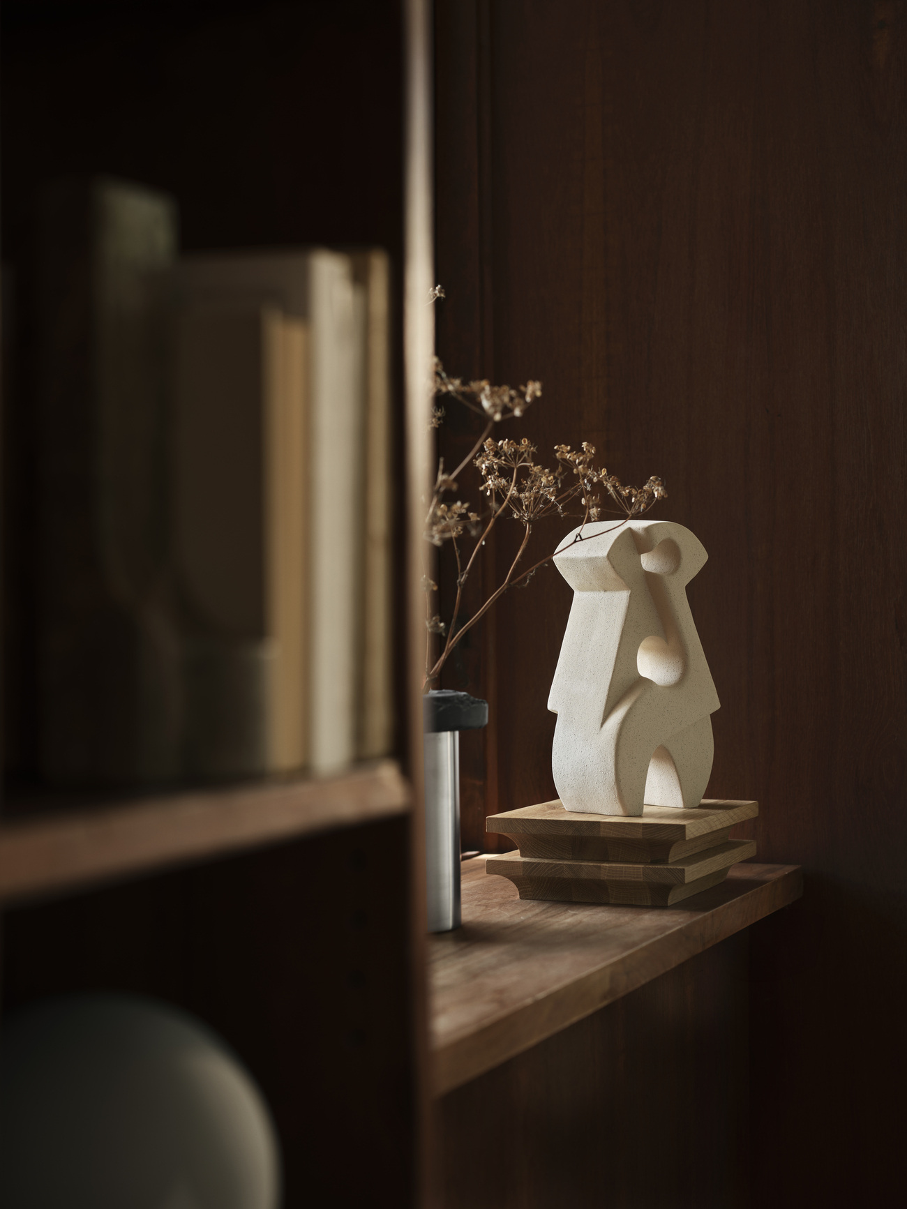 Скульптура Kristina Dam Studio Aspect Sculpture имеет визуально интригующую форму, напоминающую женское тело. Два круга внутри предмета воплощают японскую концепцию Wa, означающую гармонию в обществе. Скульптура разработана художником Henning Tais Hedin, посвятившим свою жизнь работе с геометрическими силуэтами.