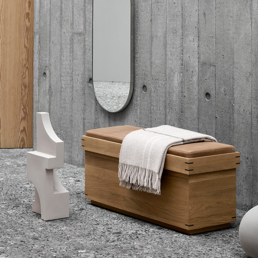 Скульптура Kristina Dam Studio Serif Sculpture играет с поверхностью керамики и глубокими отражениями света. Жёсткость и холодность материала уравновешивается плавными и тонкими штрихами дизайна, что приковывает взгляд наблюдателя.