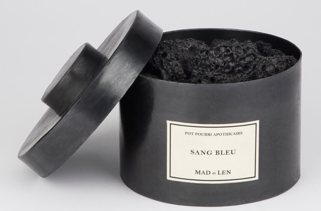 Сосуд из кованого железа изготавливается вручную в мастерских Марокко и Мавритании. Хранение ароматов в черных вулканических камнях было популярно во времена Елизаветы I благодаря их способности удерживать запахи. К каждому набору прилагается парфюмерный состав объёмом 15 мл для пропитки лавы.