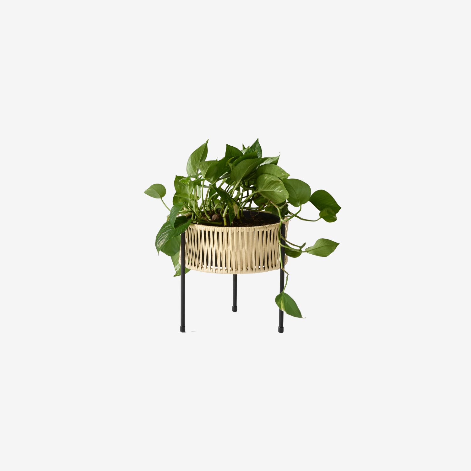 Кашпо Menu Umanoff Planter сочетает в себе плавное стальное основание с порошковым покрытием и изогнутый ротанг ручной работы, что создаёт естественный контраст. Коллекция разработана в 1961 мастером модерна Arthur Umanoff.