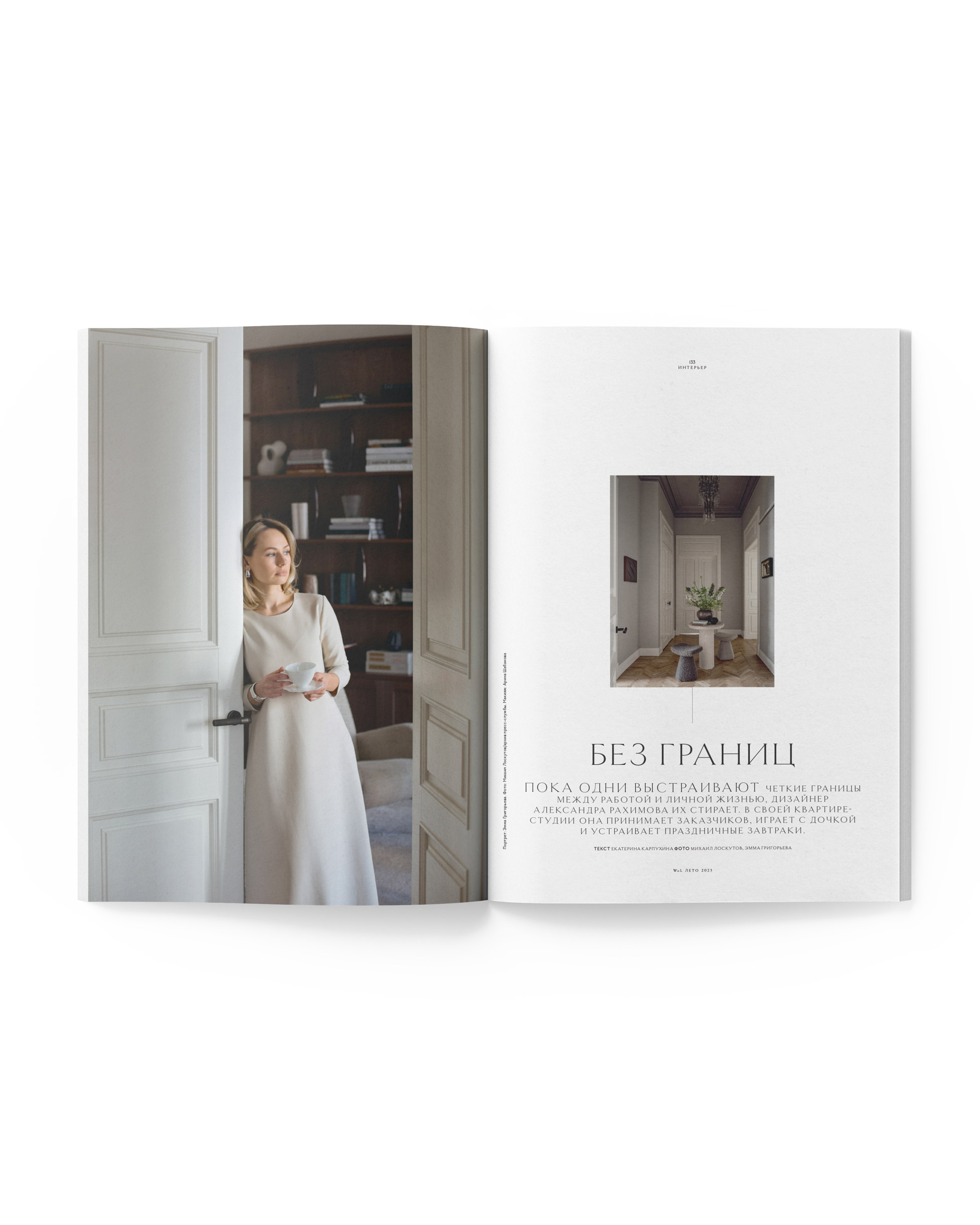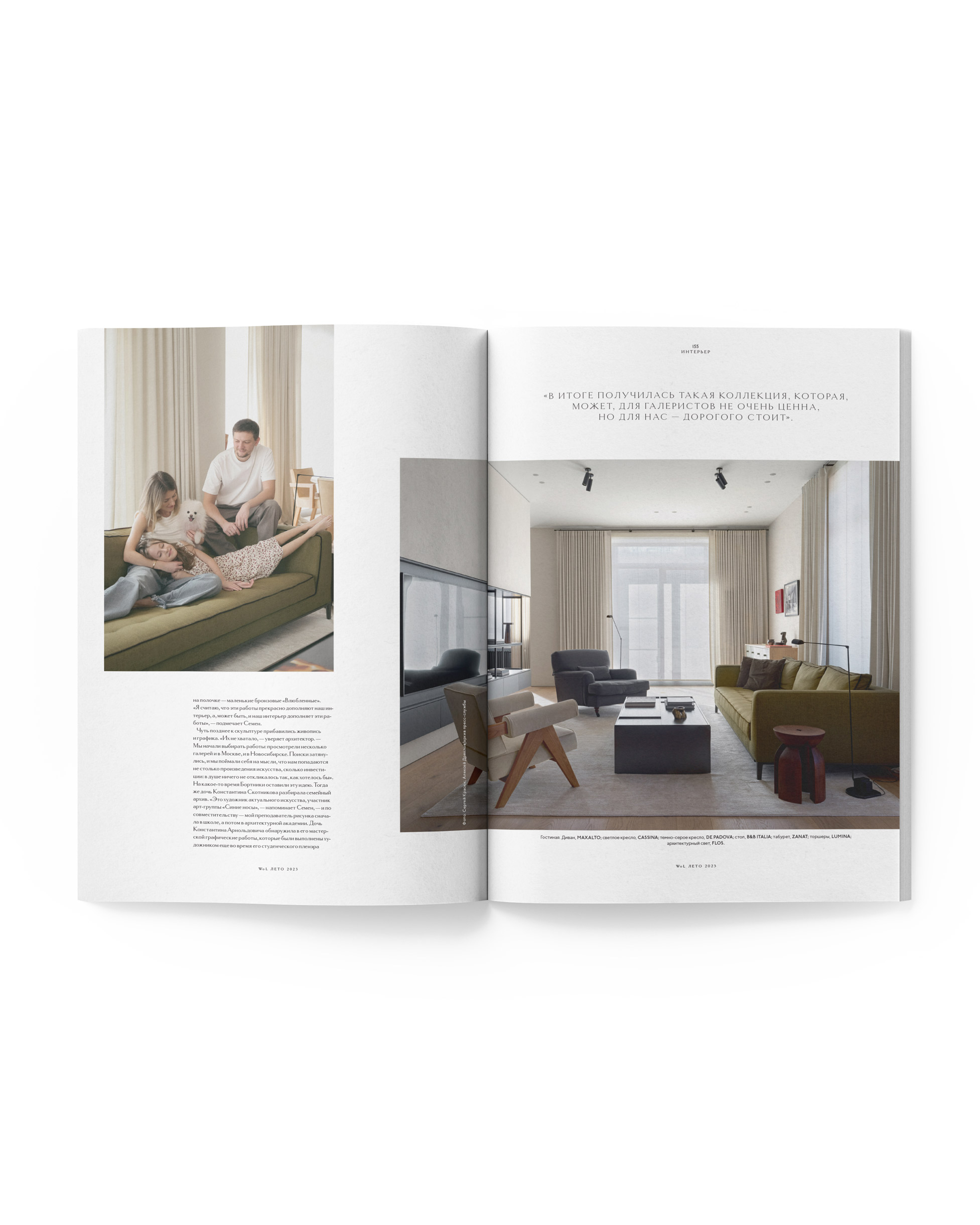 Внутри издания можно встретить уникальные беседы с директором Пушкинского музея, основательницей арт-школы Masters, дизайнером года по версии Maison&Objet и представителями известных российских брендов.