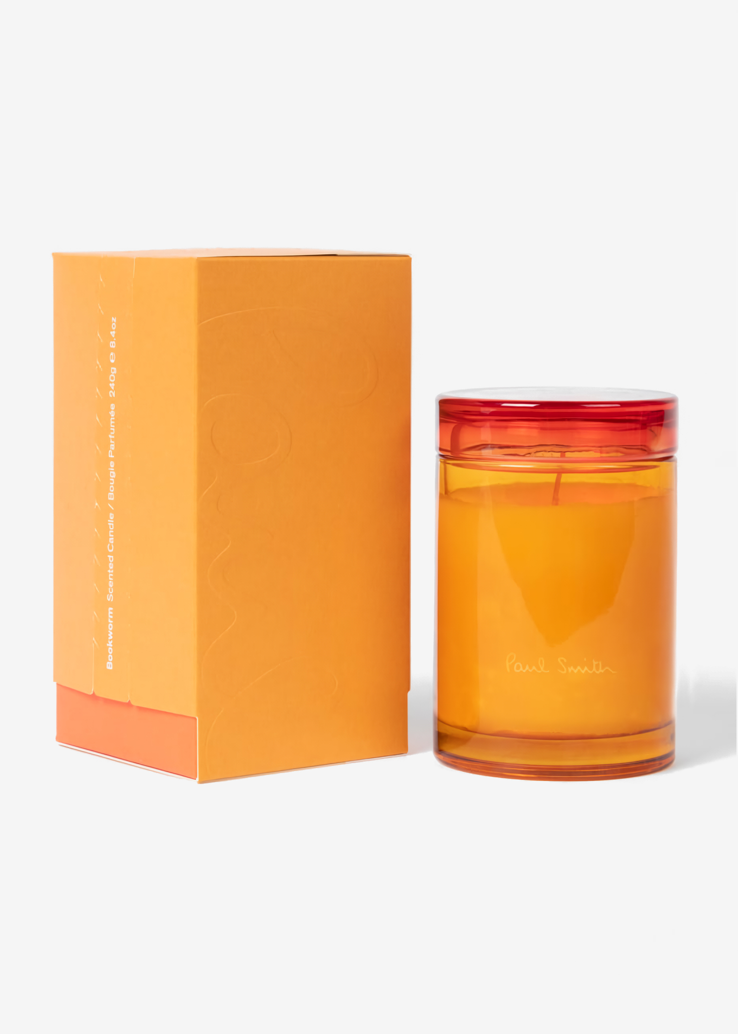 Парфюмированная свеча Paul Smith Bookworm Scented Candle пахнет стопками бумаги и пергамента, библиотечными полками и согревающим янтарём. Отлитый вручную воск помещён в яркий оранжевый сосуд. После догорания свечи стеклянный стакан можно использовать повторно, например, расположив в нём канцелярские принадлежности.