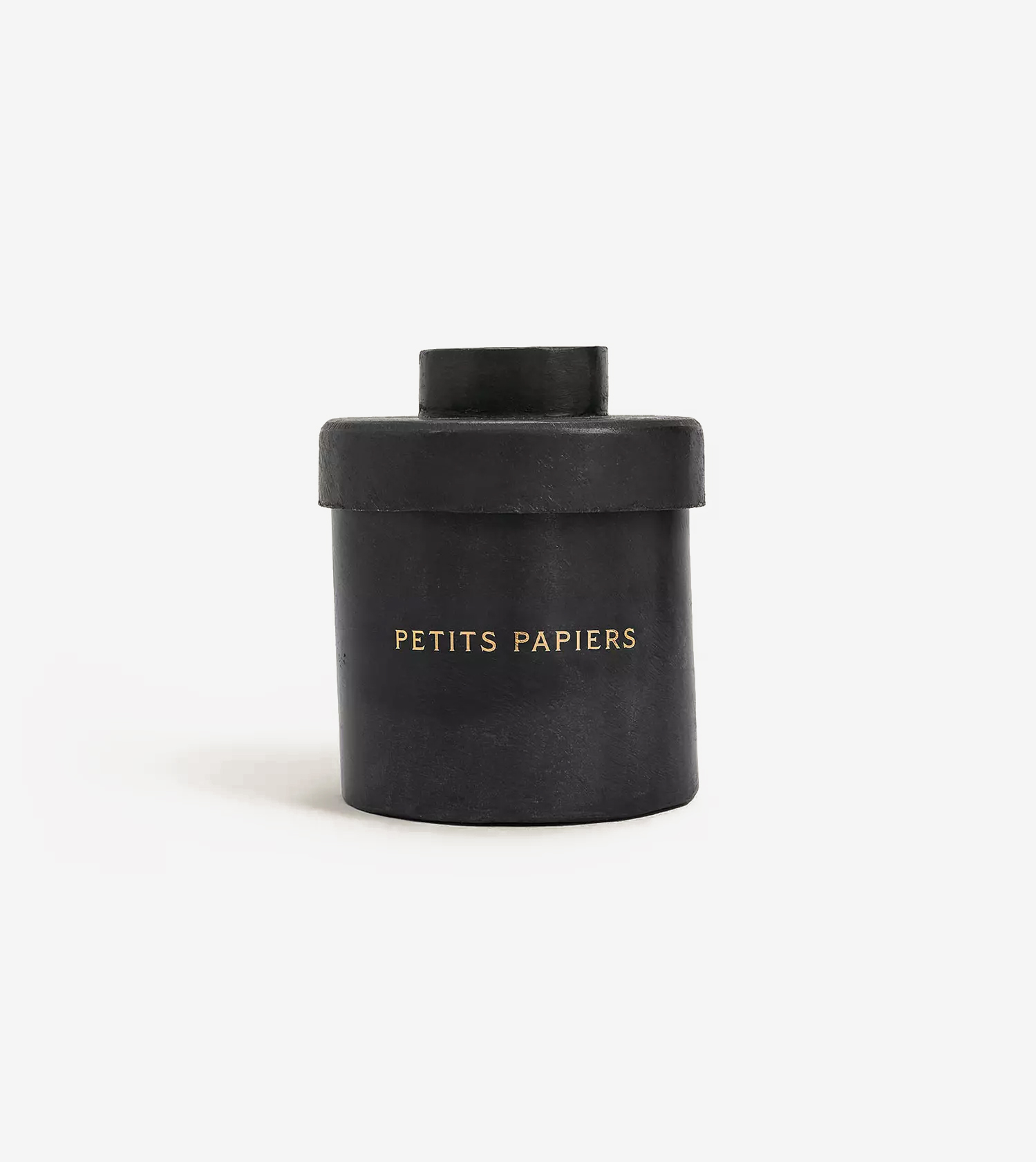Свеча ароматизированная MAD et LEN Petits Papiers издаёт запах воспоминаний и старинных рукописей. В нём слышен аккорд жжёной бумаги, сливающийся с тёплыми бальзамическими нотами. Компактная восковая свеча помещена в уникальный железный сосуд, изготавливаемый марокканскими и мавританскими мастерами вручную.