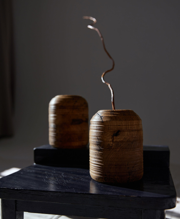Декоративная ваза Maison Home Asami Vase является прообразом японских антикварных сосудов. Изделие изготавливается из натурального дуба, а авторская технология обработки дерева позволяет добиться эффекта керамического покрытия. Каждая ваза сохраняет свой неповторимый природный рисунок.