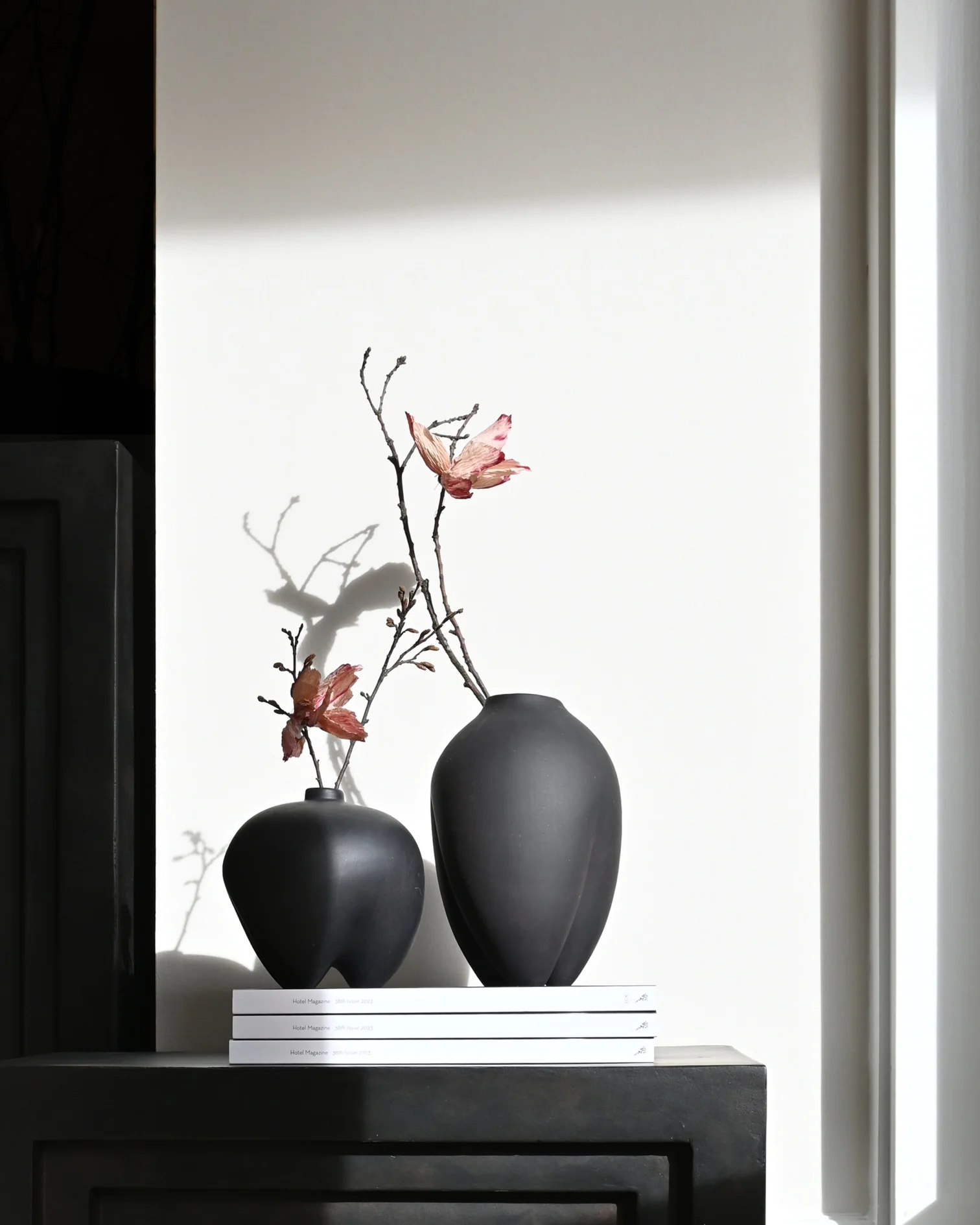 Декоративная ваза 101 Copenhagen Sumo Vase принадлежит к коллекции, вдохновленной спортивным искусством сумо. Каждая ваза имеет объемную форму и узкие заостренные ножки, что создает контраст с привычными линиями и формами. Так как все вазы покрыты глазурью вручную, цвета могут немного отличаться. Изделия не являются на 100% водонепроницаемыми, поэтому в комплект входит специальный пакет для живых цветов, чтобы сохранить их красоту и свежесть.