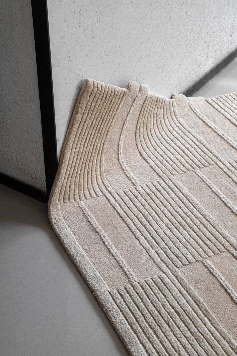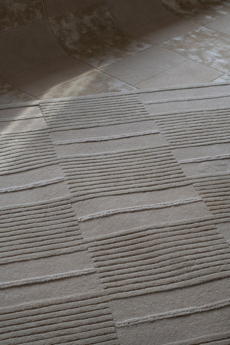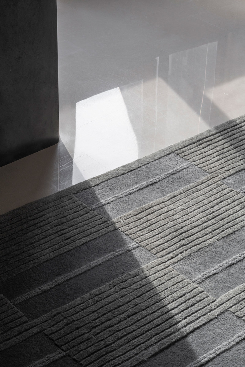 Ковер Potocco Gambit от Chiara Andreatti — ковер с регулярным геометрическим рельефом. Рисунок образован чередованием фактурных линий и ровных поверхностей. По краям расположены небольшие прямоугольные выступы. Цветовое решение сдержанное, однотонное.