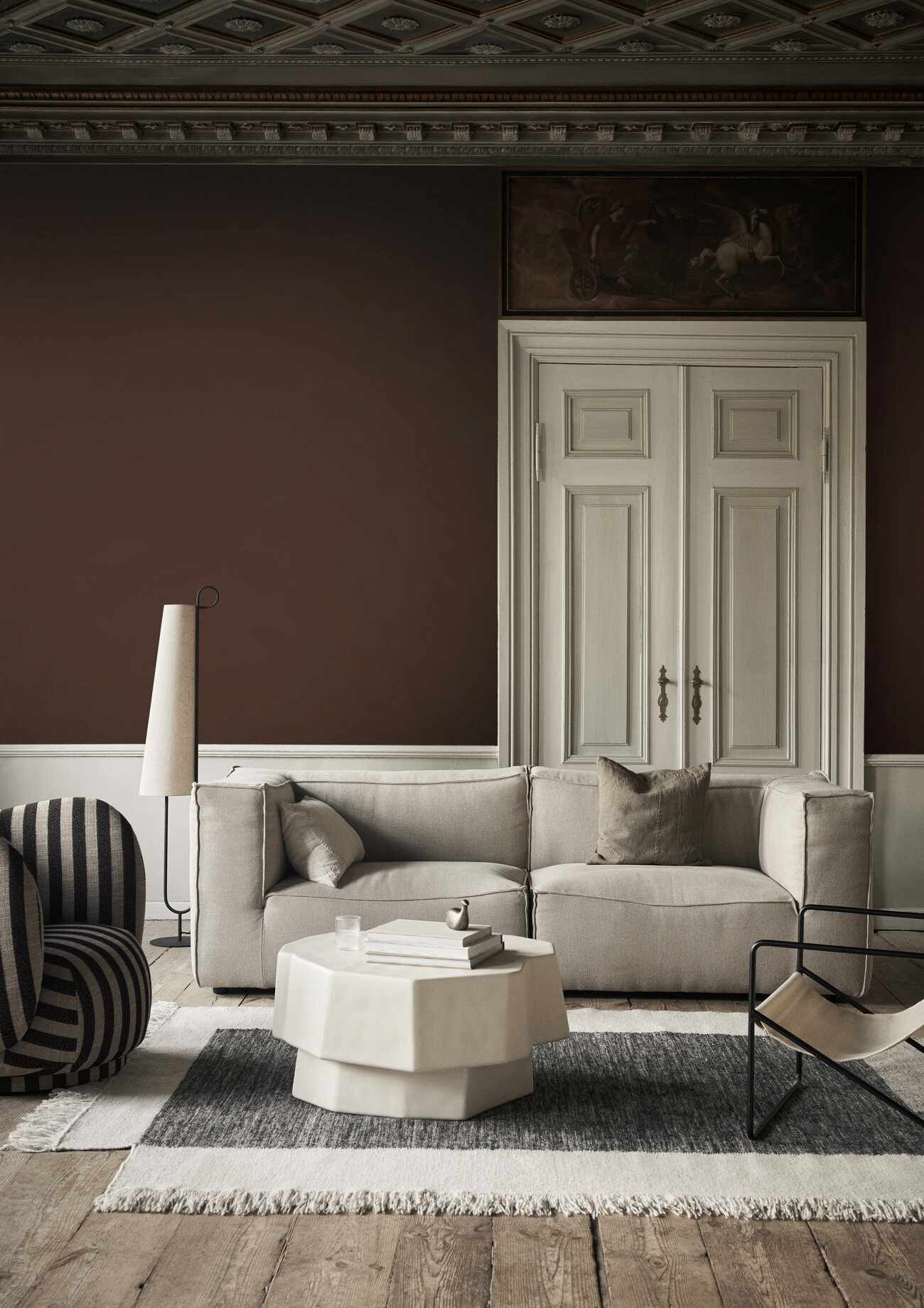 Ковёр Ferm Living Counter Rug имеет интригующую ассиметричную форму. Абстрактный геометрический орнамент подчёркивает необычный силуэт изделия и создаёт завораживающее впечатление. Ковёр украшен длинной бахромой.