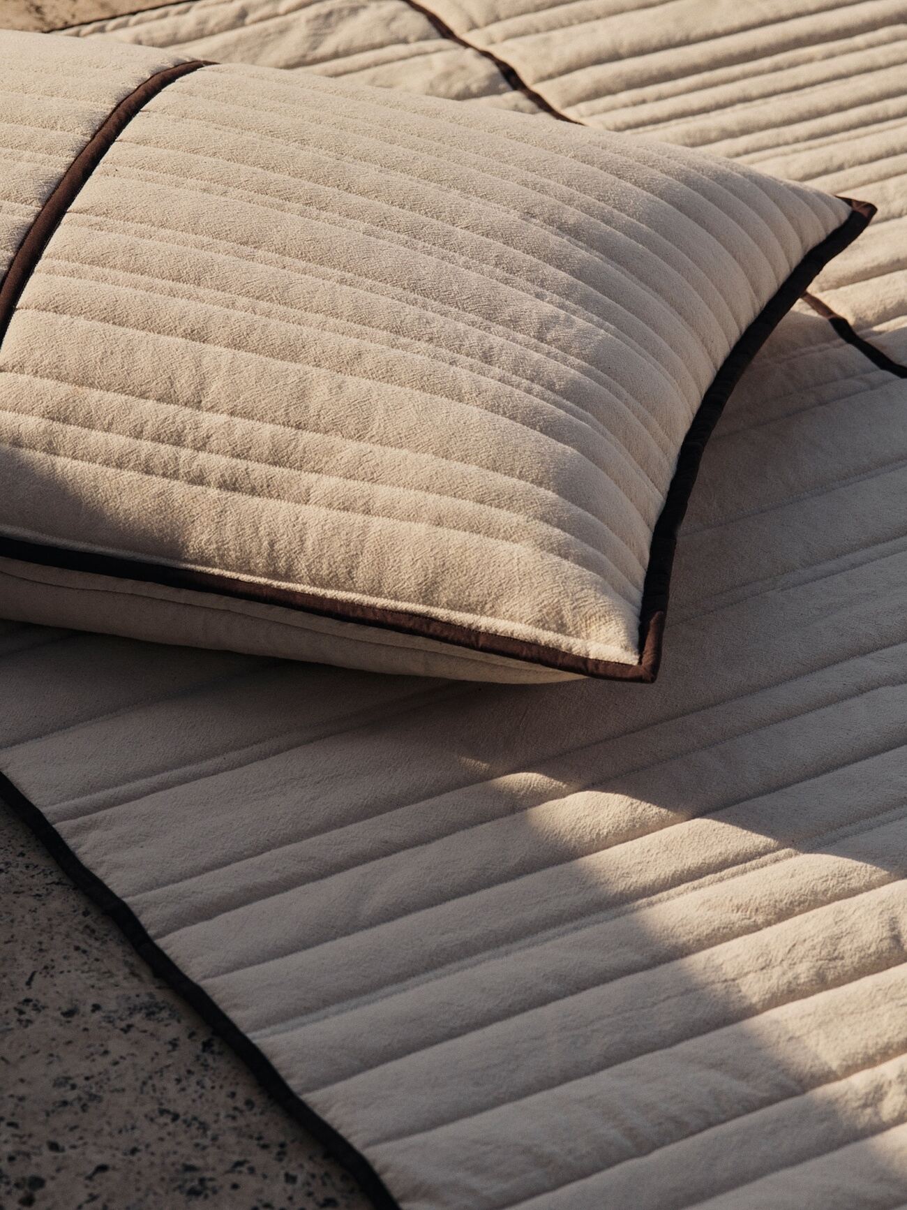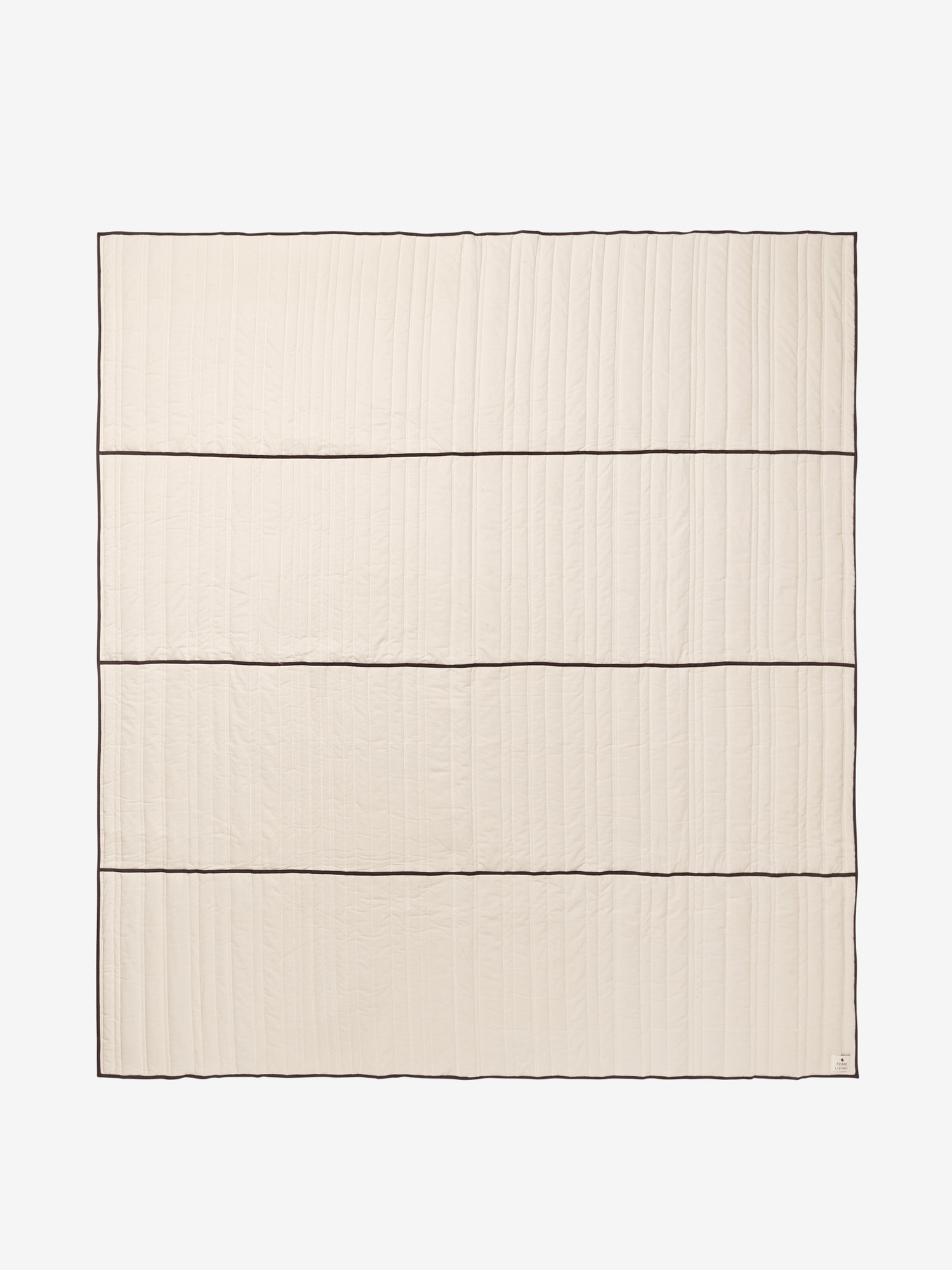 Покрывало Ferm Living Vari Quilted Bedspread — Double вдохновлено минималистской эстетикой. Тёплый плед выполняется из приятного наощупь хлопка светлого оттенка. Контрастный кант цвета тёмного шоколада придаёт покрывалу Vari Quilted Bedspread — Double особую элегантность.