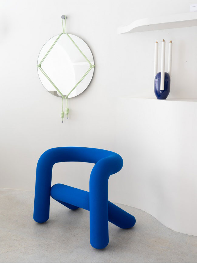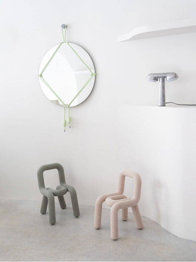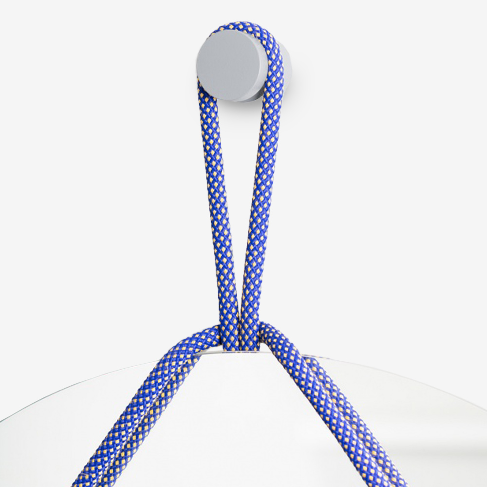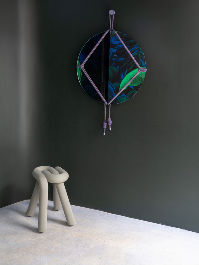 Зеркало Shibari Round Пьера Шаррье вдохновлено не только японскими техниками бондажа, но и подъемными механизмами, используемыми в строительной индустрии. Расположение узлов и переплетений обусловлено исключительно необходимостью идеального баланса и подвеса в одной точке. Особое плетение веревки распределяет напряжение, создаваемое весом зеркала, оставляя всю конструкцию полагаться на законы ее главного условия - гравитации.