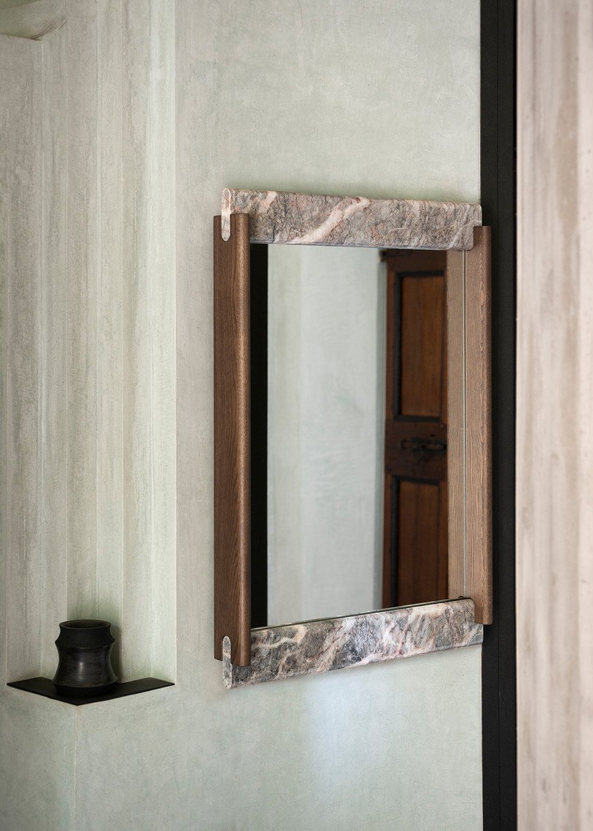 Зеркало Potocco E Claire от Ferriani.Sbolgi — настенная прямоугольная модель из коллекции E Claire. Рама образована боковыми рейками из ясеня, удерживающими массивные мраморные пластины сверху и снизу. Мрамор сохраняет природный рисунок. Коллекция зеркал E Claire включает три размера и сочетается с одноименными консолями.