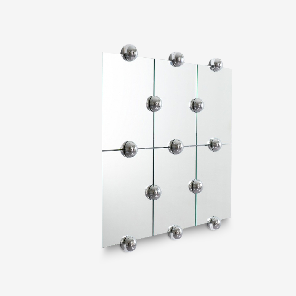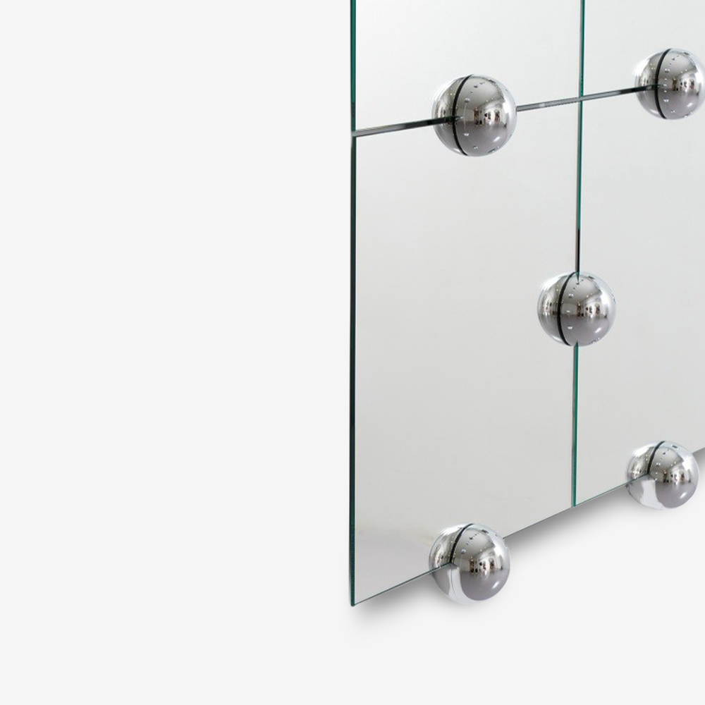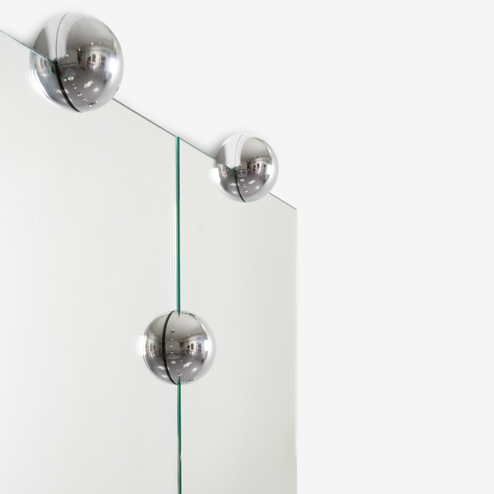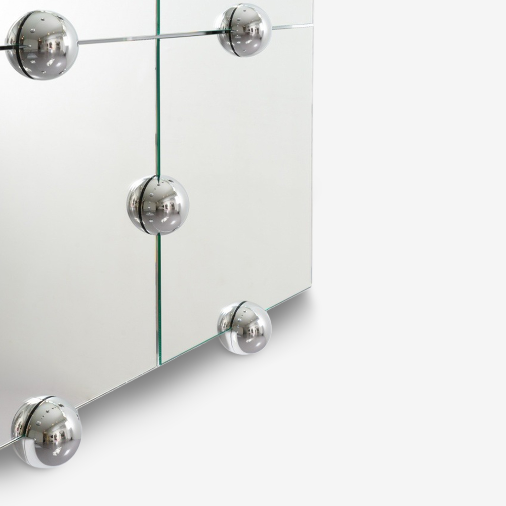 Массивное зеркало Sphera Crystal Palace весом почти 50 кг смотрится как легкое и невесомое за счет отсутствия рамы и сферических хромированных элементов, которые разделяют зеркальное полотно и создают ощущение использования сразу нескольких зеркал. Модель Crystal Palace отлично подходит для использования в просторных помещениях, например, в холлах, гостиных или лаундж-зонах.