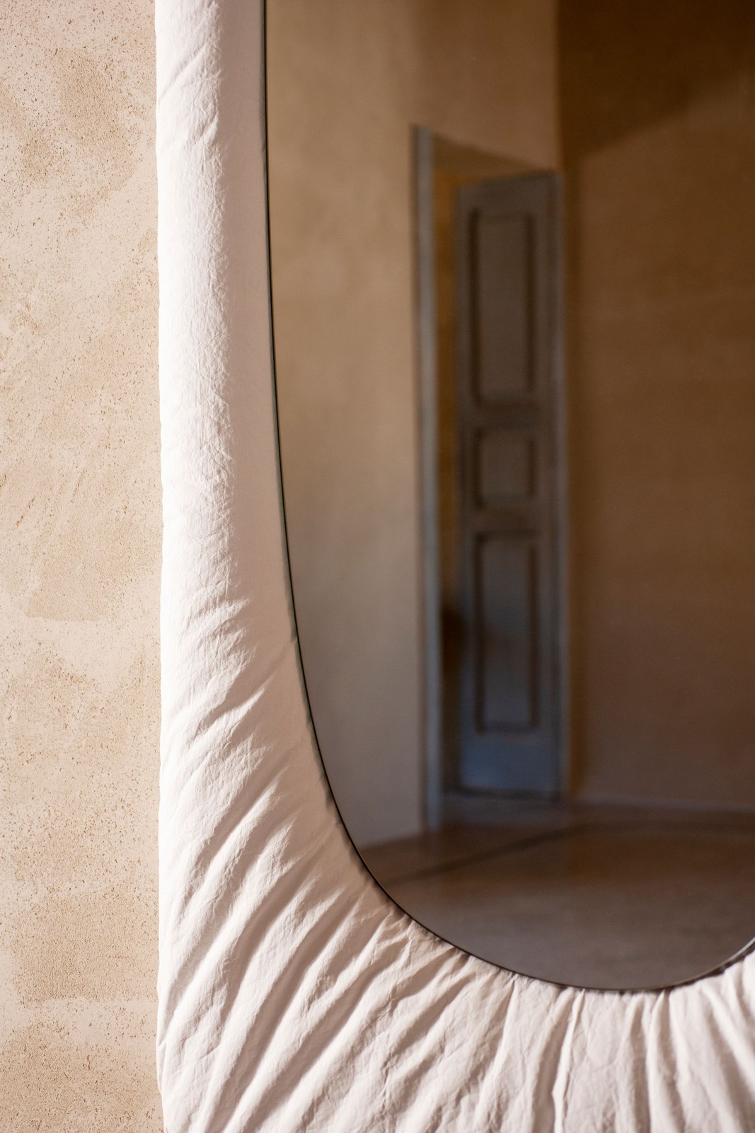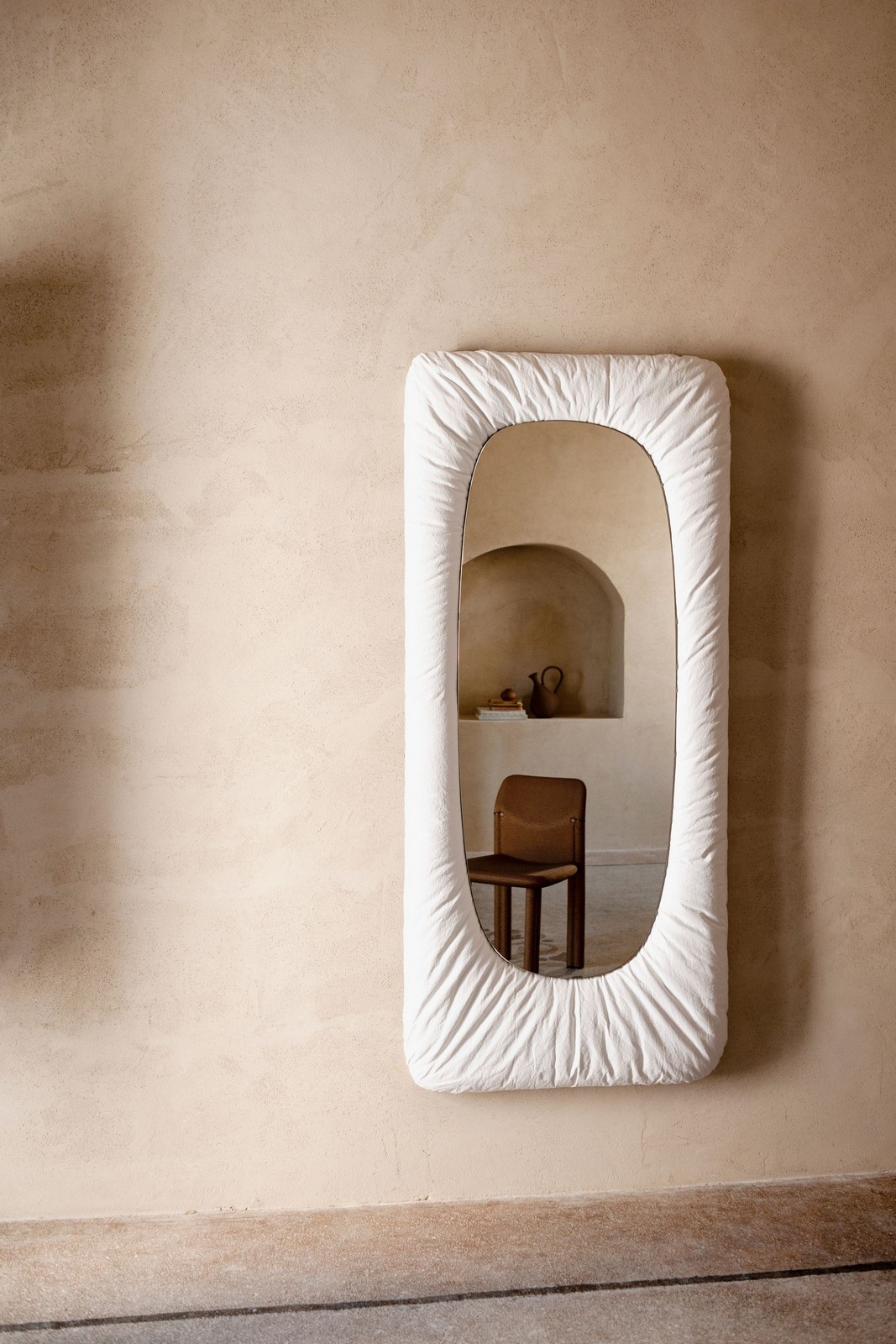 Зеркало Tacchini Stellar от Faye Toogood — модель из коллекции Cosmic. Прямоугольная форма с закругленными углами. Деревянная рама обтянута натуральными и бумажными волокнами. Мягкое обрамление образует объемный валик по периметру.