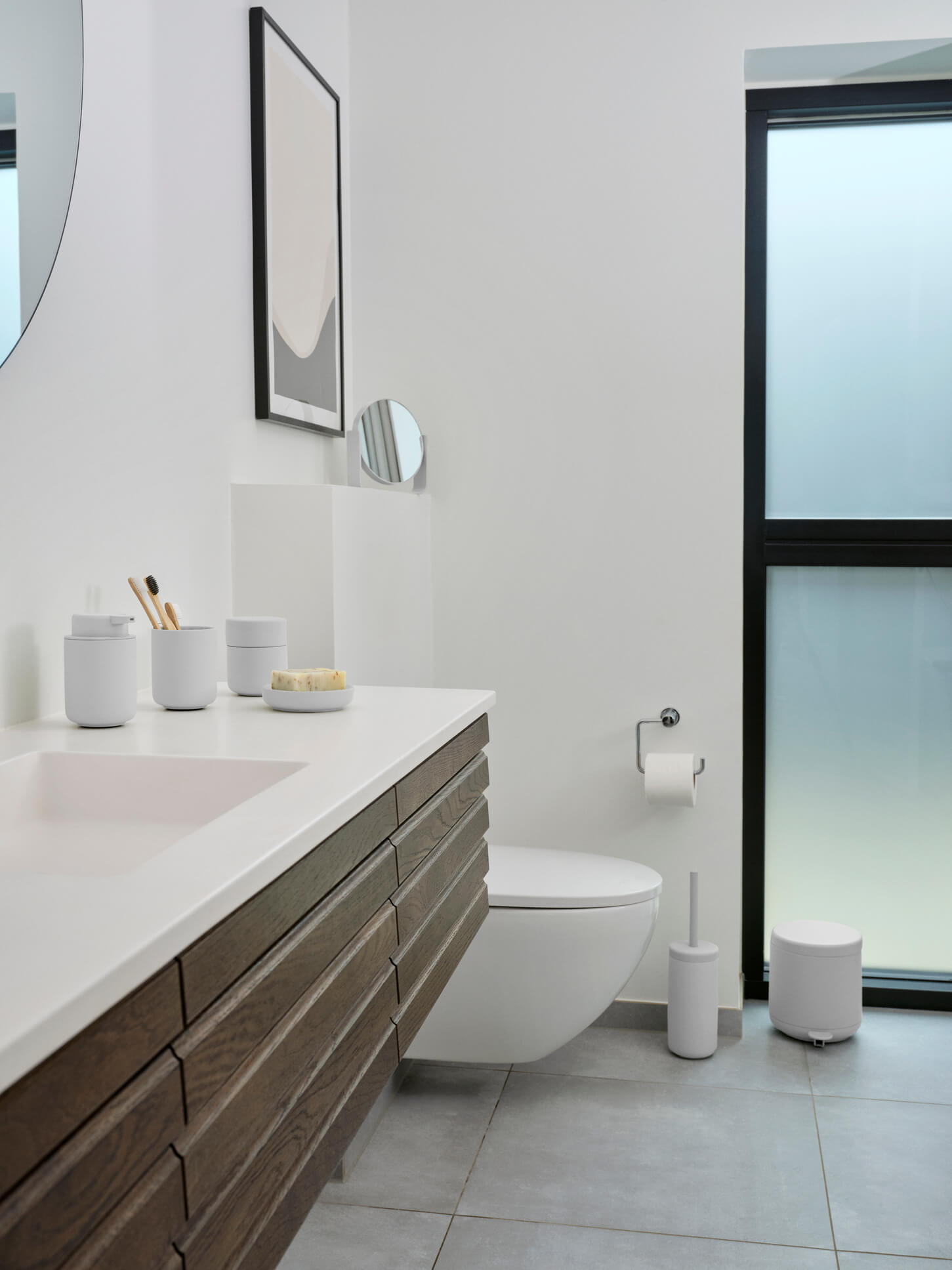 Минималистичный дизайн зеркала настольного Zone Denmark Ume делает его универсальным предметом декора. Прочная алюминиевая рама служит надёжной основой для зеркала, способного вращаться вокруг своей оси. Модель имеет две стороны — одна выступает в виде стандартного зеркала, а другая обеспечивает 5-кратное увеличение.