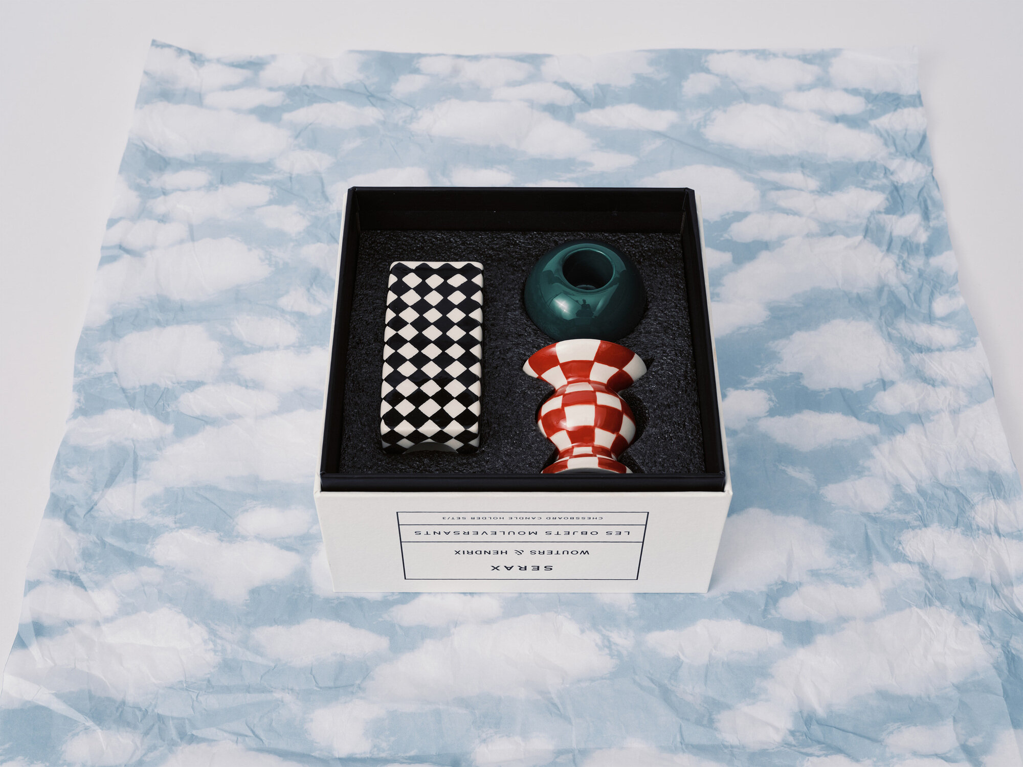 Набор из 3-х подсвечников Serax Candle holder set/3 Chessboard Les Objets Mouleversants, созданный в коллаборации с ювелирным домом Wouters & Hendrix, черпает вдохновение в сюрреалистичных узорах и геометричных контурах. В сет включены три разных по характеру предмета декора: строгий прямоугольный, элегантный изогнутый и лаконичный сферический. Каждый подсвечник выглядит уникальным благодаря ручной росписи.