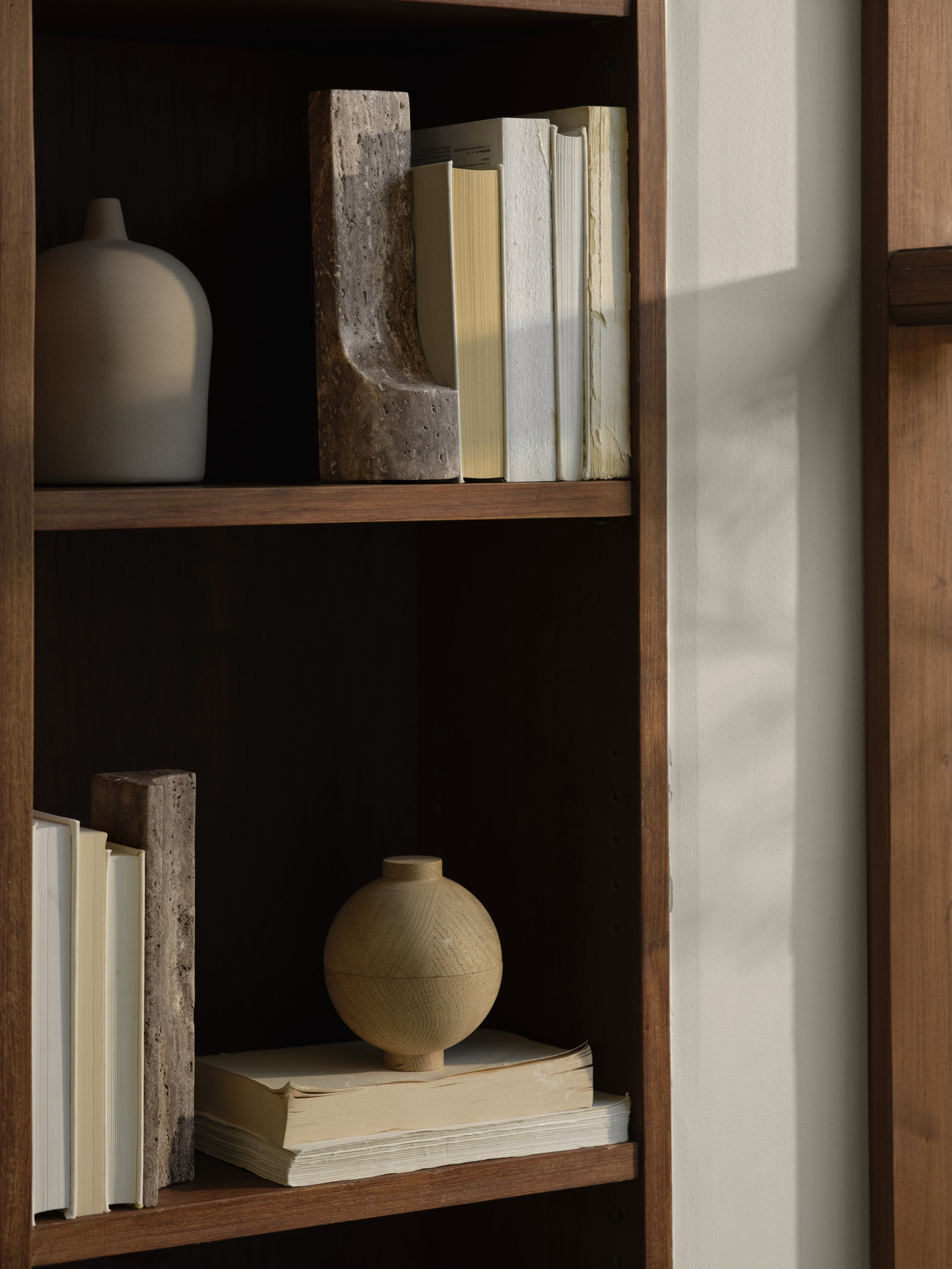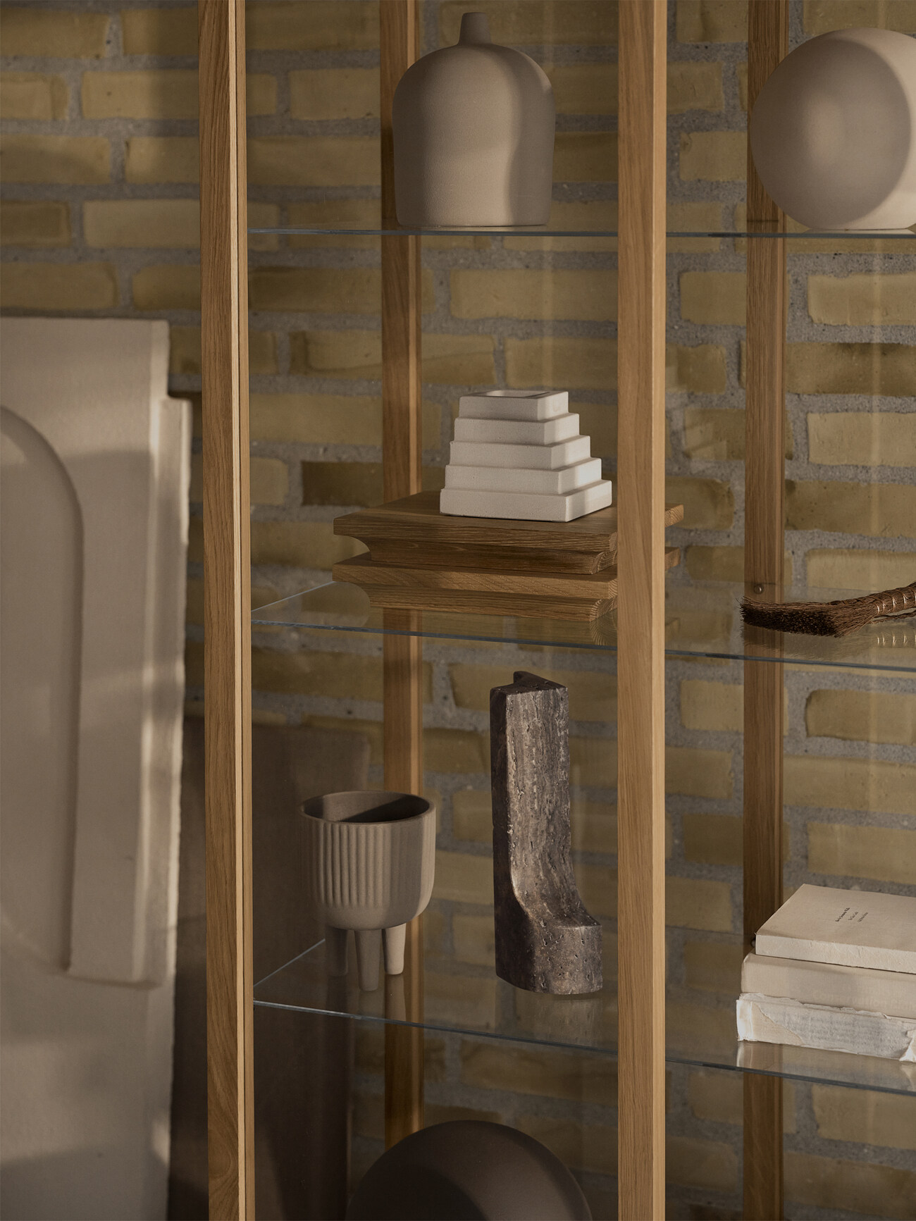 Скульптура Kristina Dam Studio Archetype Sculpture выделяется архитектурной изогнутой формой. Изделие может использоваться в качестве отдельного арт-объекта или подставки для книг. Для изготовления скульптуры используется прочный полированный травертин.