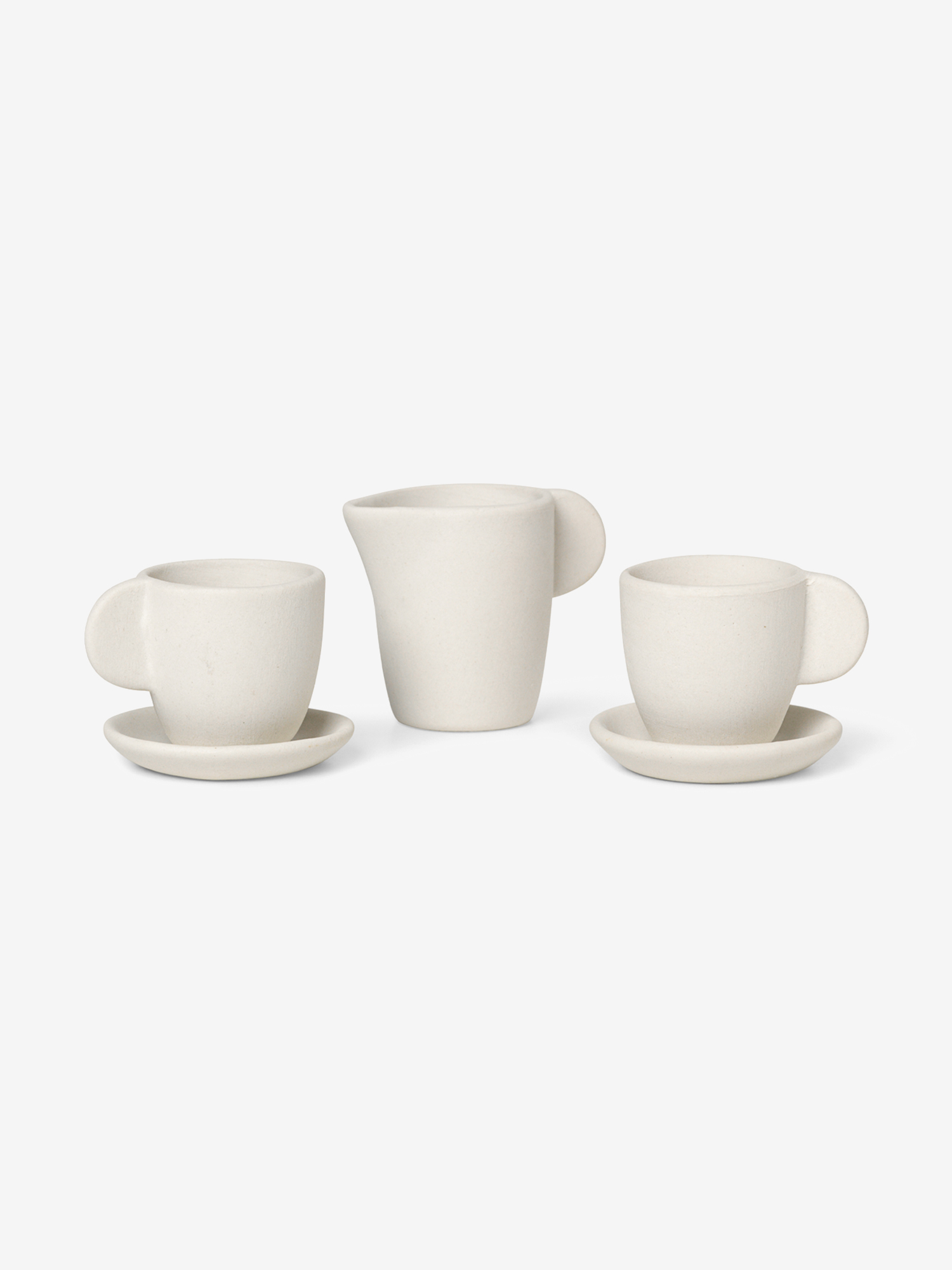 Детский чайный набор Ferm Living Miniature Tea Set — Ceramic — это миниатюрный сервиз из 3-х предметов (две чашки с блюдцами и кувшин). Все элементы набора изготовлены из неглазурованной керамики с очаровывающей шершавой фактурой. С набором Miniature Tea Set — Ceramic ребёнок всегда сможет устроить чаепитие любимым плюшевым игрушкам.
