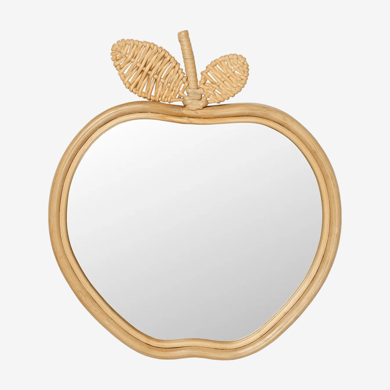 Зеркало Ferm Living Apple Mirror определённо привлечёт внимание вашего малыша. Миниатюрное изделие украшено рамой из плетёного ротанга. Натуральная цветовая гамма позволит органично встроить зеркало в интерьеры различных стилей.