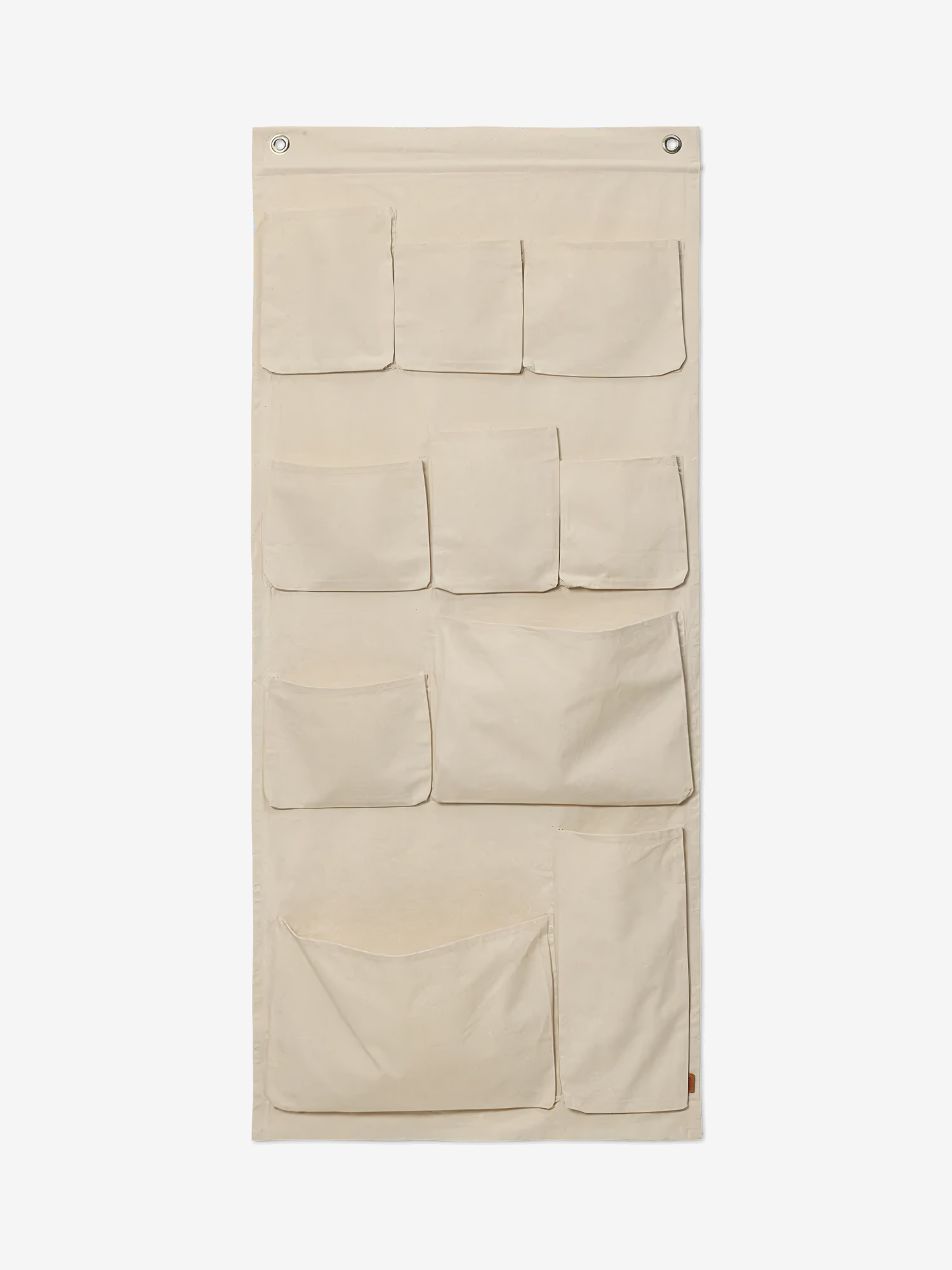 Настенный органайзер Ferm Living Canvas XL Wall Pockets — простое, но эстетичное решение для эффективной организации пространства. На поверхности изделия расположено 10 больших хлопковых карманов. Для удобного крепления на стену в верхней части органайзера предусмотрены специальные отверстия.