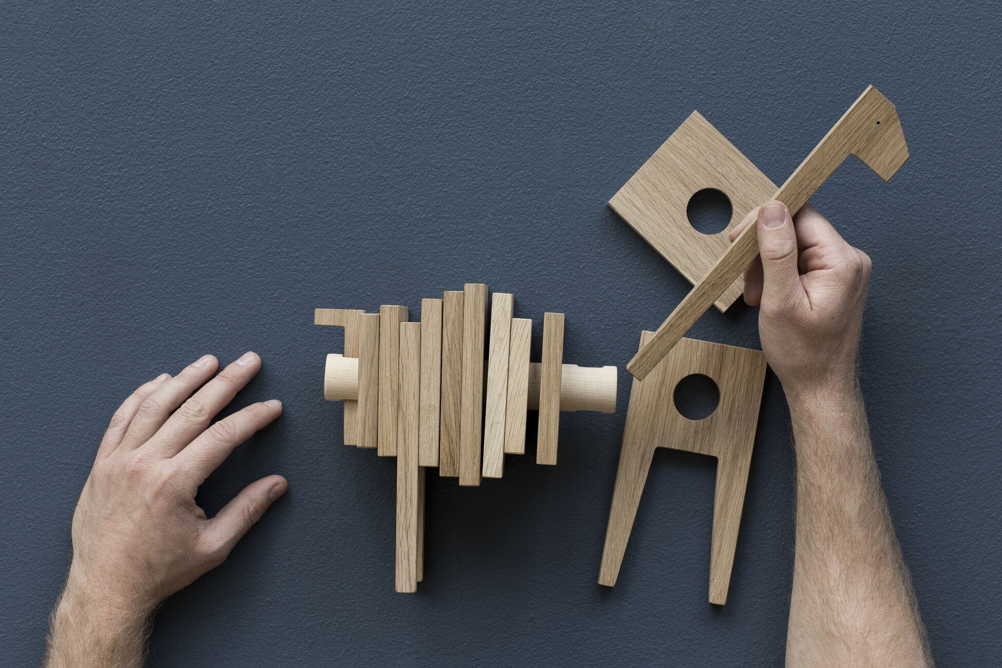 Скульптура Moebe Polygrif — уникальное творение, состоящее из множества деталей. Меняя расположение элементов, можно превращать милое животное в любую абстрактную фигуру. Изделие из массива дуба и бука способно сохранять первоначальный вид на долгие годы.