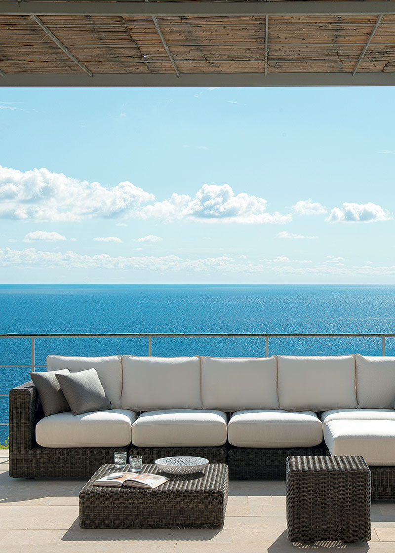 Модульный диван Ethimo Cube доступен в различных вариантах отделки, размерах и конфигурациях. За подробностями можно обратиться к менеджерам Laboratory Dome.
