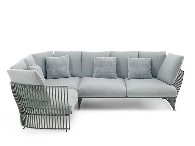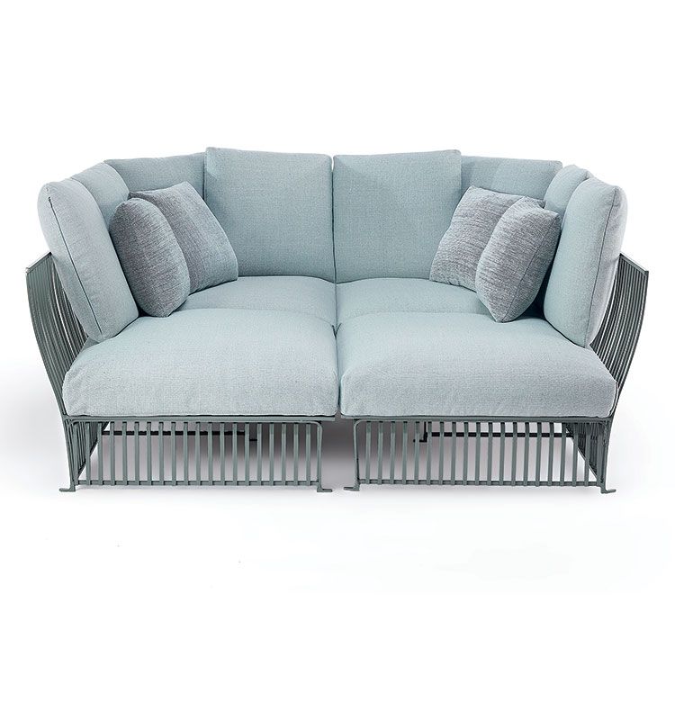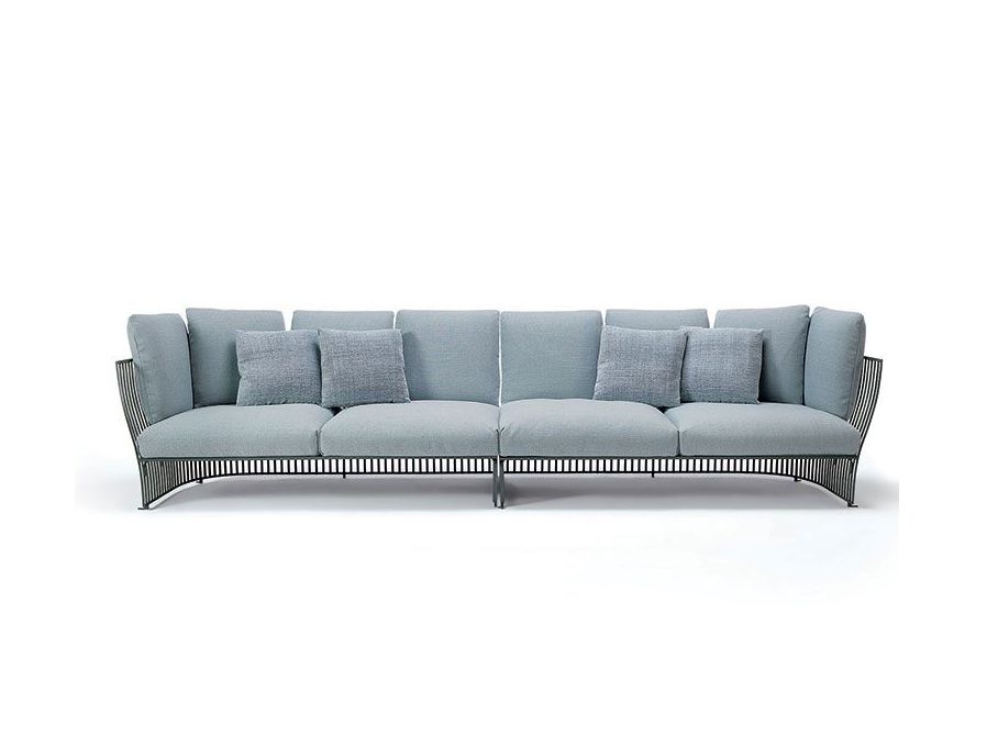 Модульный уличный диван Ethimo Venexia от Luca Nichetto с изогнутой формой и элегантным силуэтом. Металлический каркас с вертикальными рейками напоминает городские ограждения прошлого. Мягкие подушки сиденья и спинки с округлыми линиями. Модель из коллекции Venexia для открытых пространств.