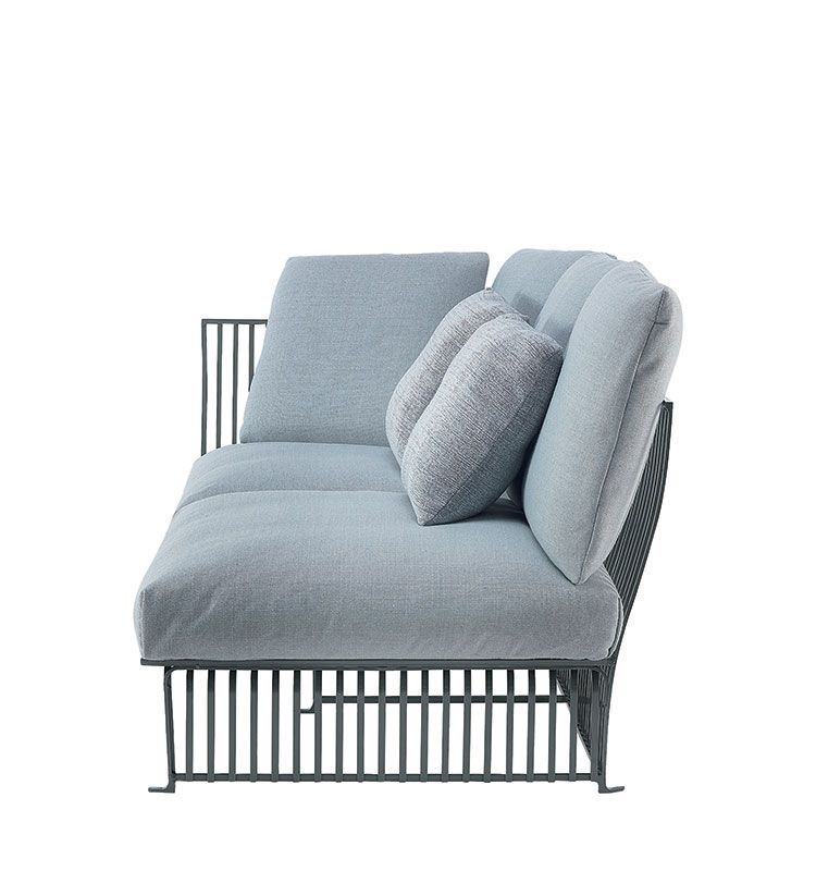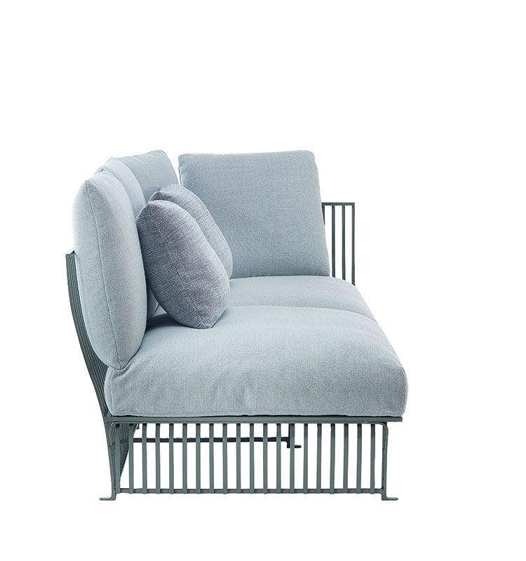 Каркас из алюминия с текстурной матовой отделкой, съемные подушки сиденья и спинки с обивкой из акрила, декоративные подушки опционально.