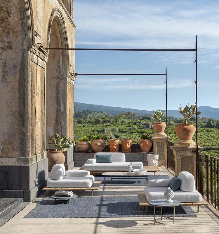 Диван Ethimo Calipso доступен в различных вариантах отделки. За подробностями можно обратиться к менеджерам Laboratory Dome.