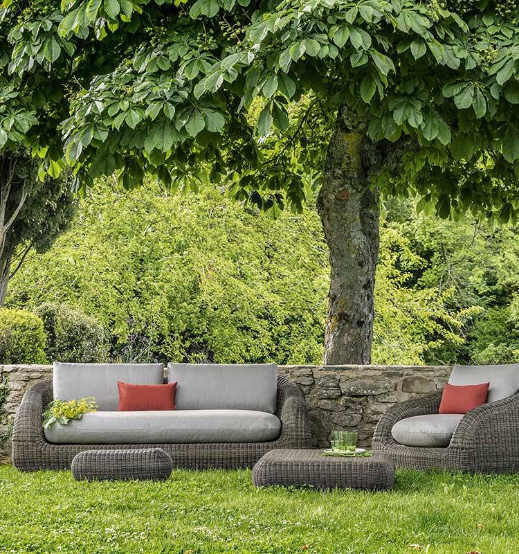 Диван Ethimo Phorma доступен в различных вариантах отделки. За подробностями можно обратиться к менеджерам Laboratory Dome.