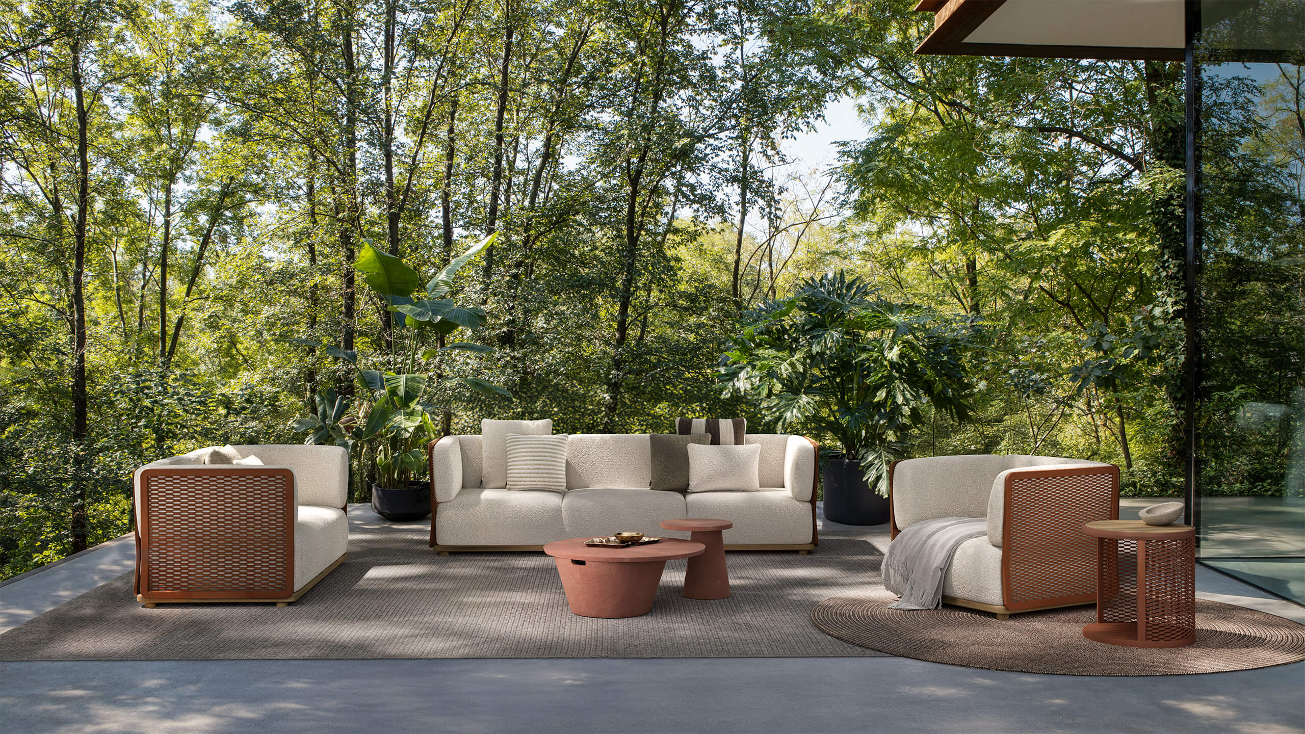 Уличный диван Atmosphera Switch доступен в различных вариантах отделки. За подробностями можно обратиться к менеджерам Laboratory Dome.