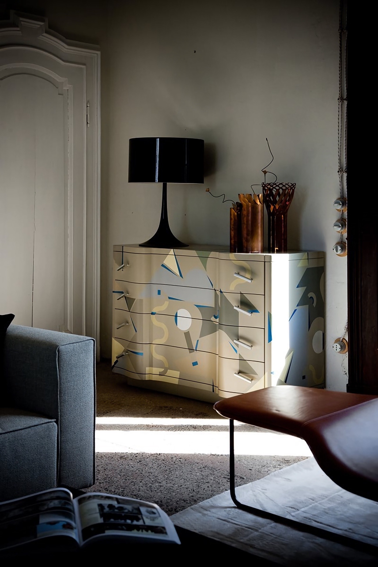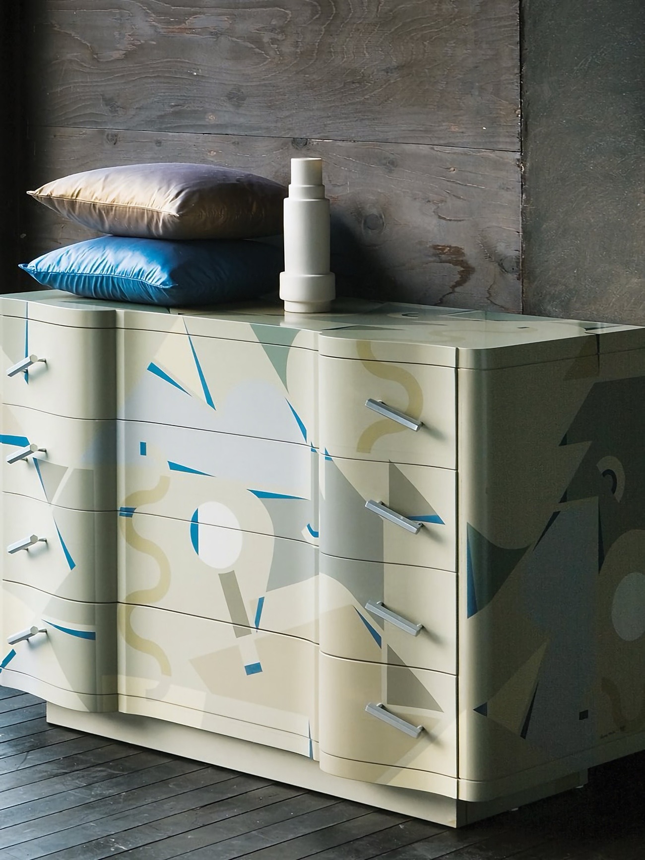 Комод Zanotta Cetonia — авангардный художественный объект с классическим силуэтом. Деревянный каркас модели служит холстом для полихромной росписи, выполненной вручную. Лаконичные ручки из анодированного алюминия уравновешивают экспрессивный дизайн Cetonia.
