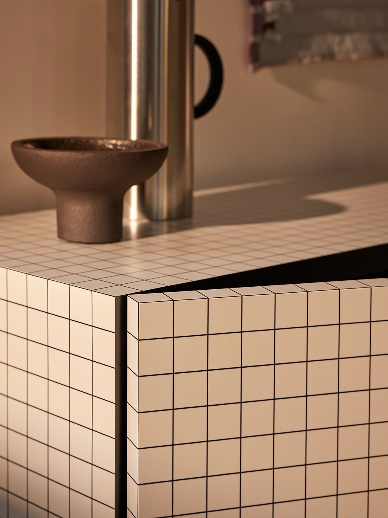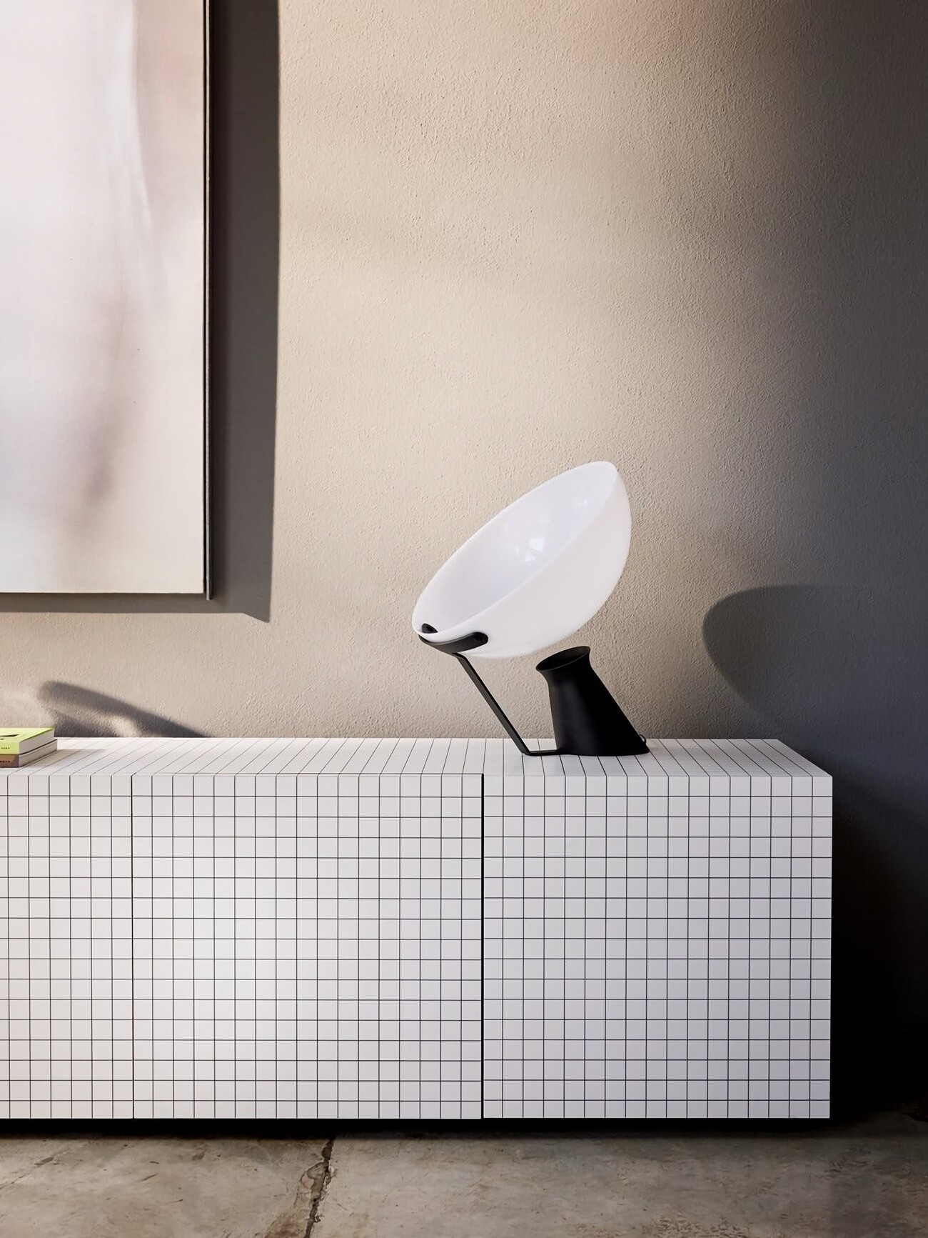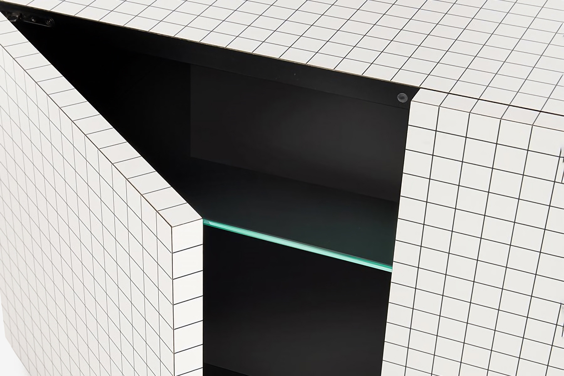 Комод Zanotta Quaderna 756 имеет один из самых узнаваемых дизайнов фабрики. Корпус изделия облицован белым ламинатом с нанесённым методом шелкографии орнаментом. Линии принта идеально совпадают на стыках всех граней, превращая предмет мебели в бесконечную абстракцию. Отделанное чёрным ламинатом внутреннее пространство комода Quaderna 756 скрывает регулируемые полки из закалённого стекла.