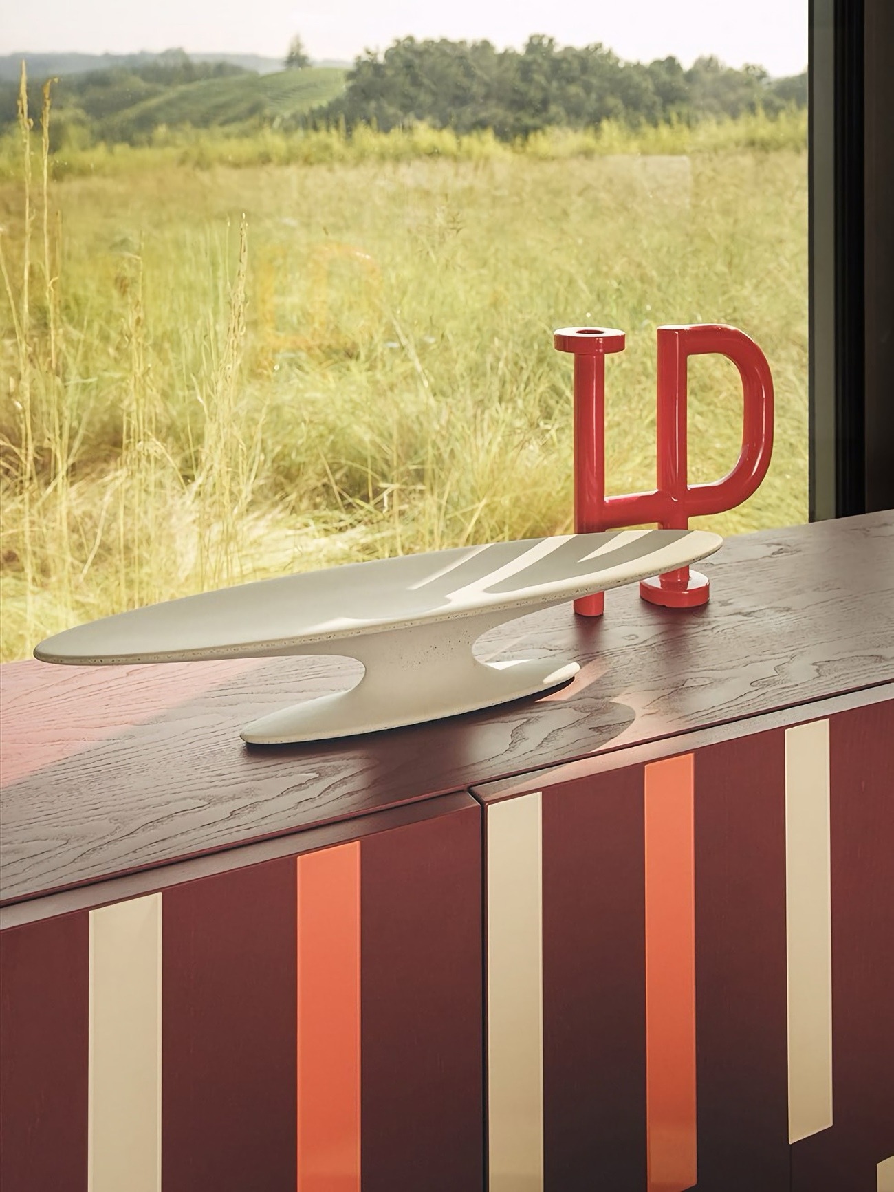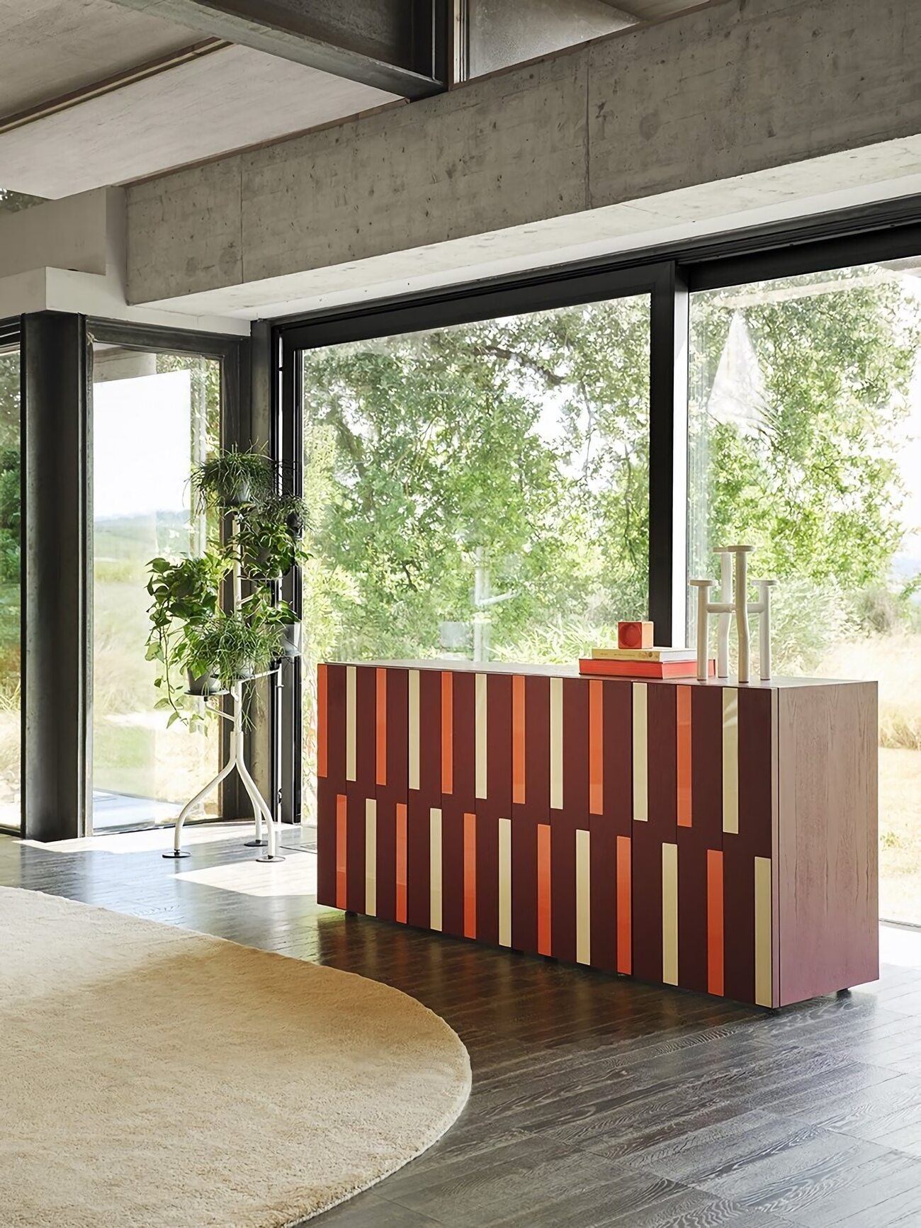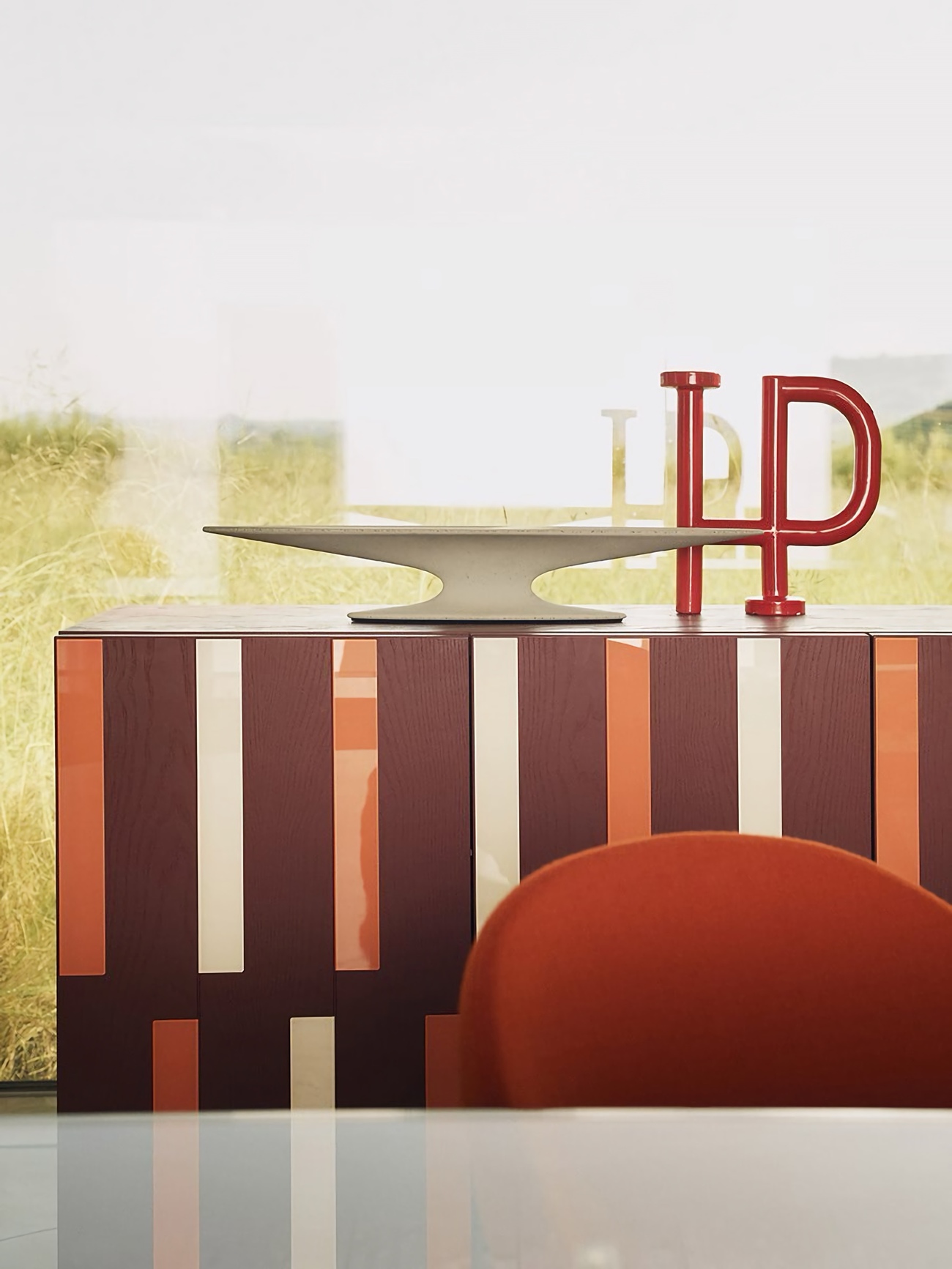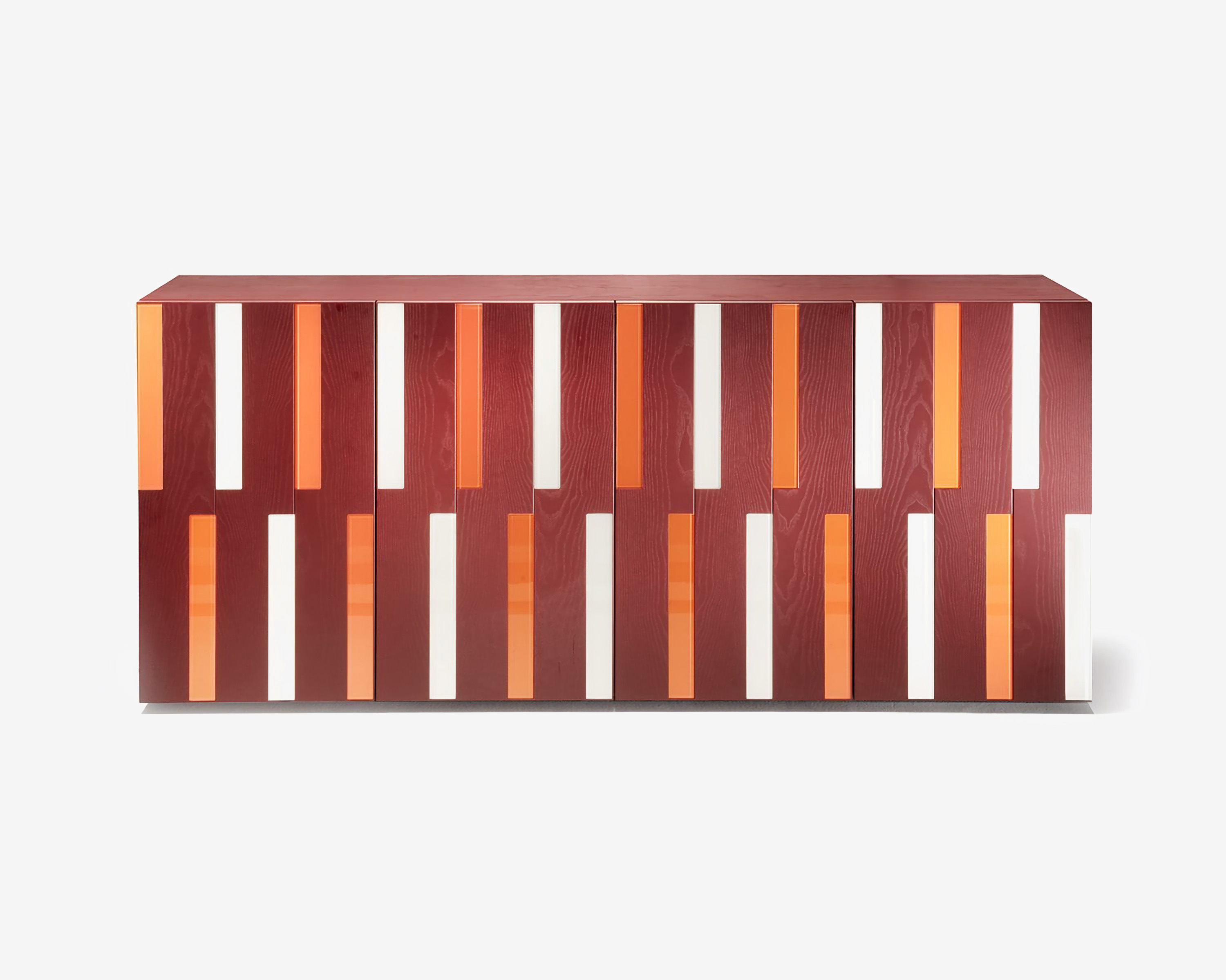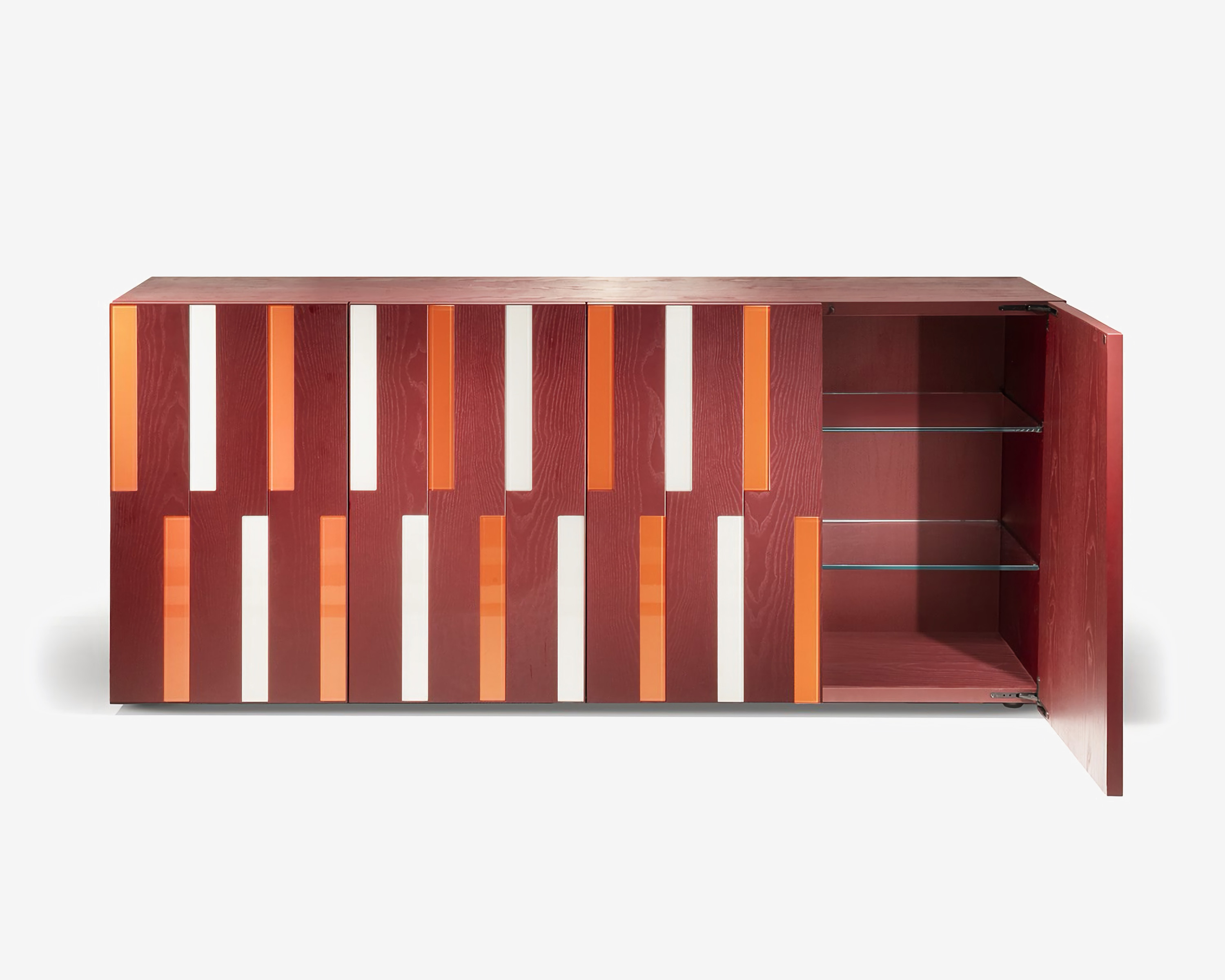 Комод Zanotta Riga-Riga 789 — арт-объект с привлекающим внимание дизайном. Деревянный фасад Riga-Riga 789 дополнен вертикальной инкрустацией из цветного стекла. Полки комода легко выдерживают вес предметов посуды и декора.