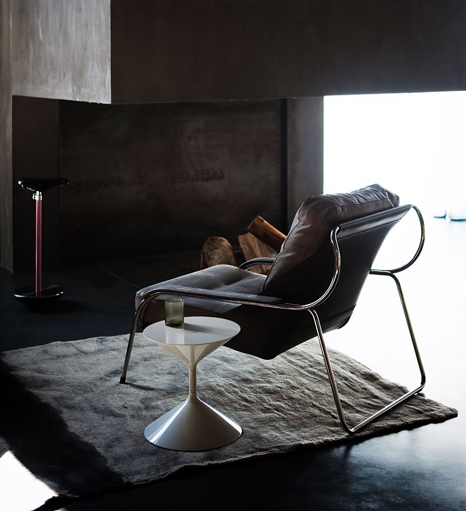 Сталь, полиуретан, гусиный пух, текстиль, кожа.
