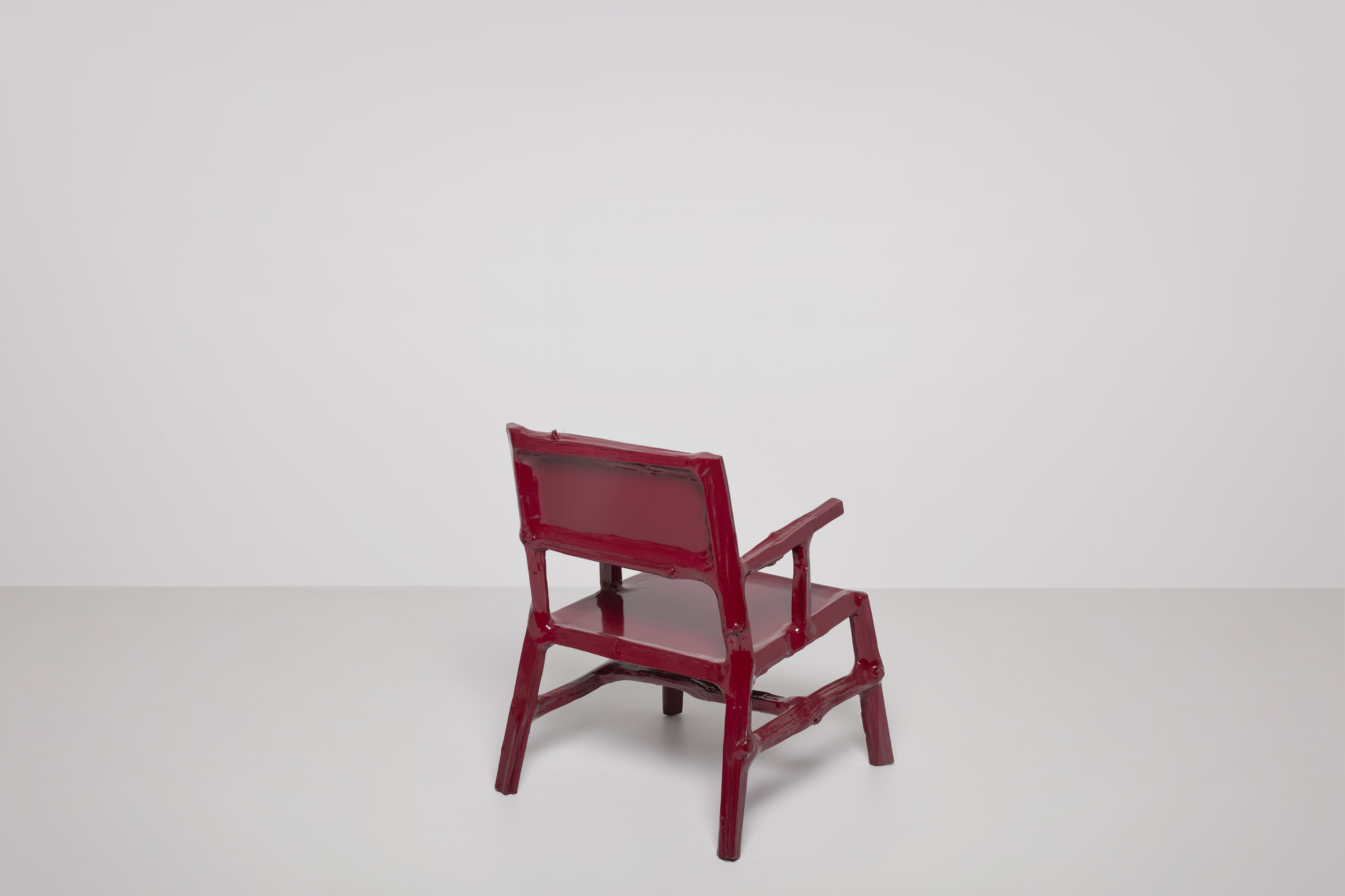 Кресло Teun Zwets Splitted Armchair — яркий пример того, как предмет мебели может стать объектом коллекционного искусства, не теряя своей функциональности. Сложная форма кресла Splitted Armchair буквально вырубается вручную с помощью топора. Финальный слой глянцевого лака в сочных авторских оттенках обволакивает поверхность модели подобно густой глазури.