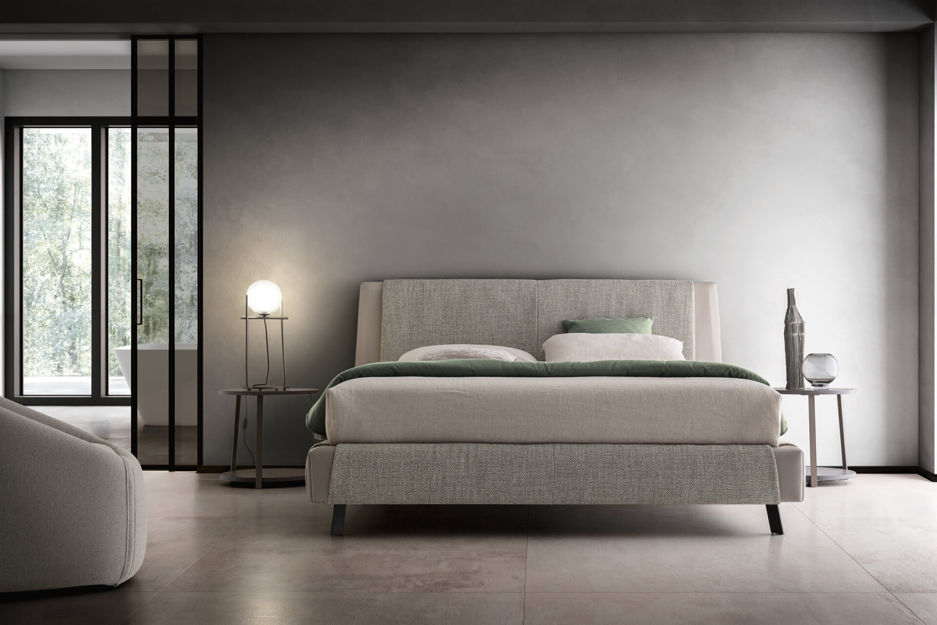 Кровать Ditre Italia Kailua авторства Daniele Lo Scalzo Moscheri отличается характерными металлическими ножками, элегантными пропорциями и абсолютным комфортом. Выберите обивку, наиболее подходящую вашему интерьеру, из нескольких категорий ткани и кожи.
